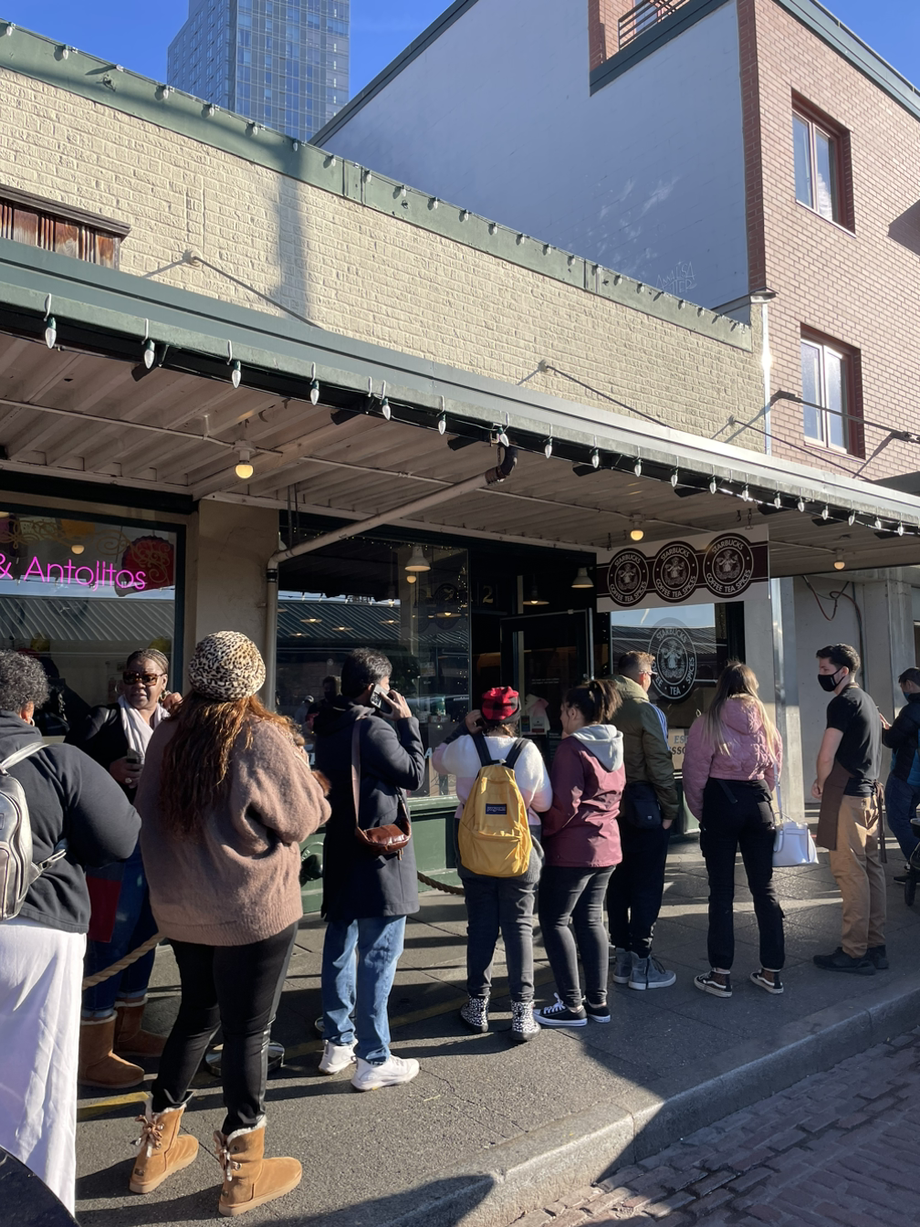 이튿날부터 시작된 본격 시애틀 여행은 파이크 마켓 근처에 있는 비스킷 비치(bitch)에서의 아침 식사로 문을 열었다. 비스킷이라 불리는 두껍고 단단한 빵 위에 고기소스를 뿌려 빵을 촉촉하게 만들고 그 위에 토핑을 달리해 파는 남부식 음식이었다. 이곳의 주문과 계산은 QR코드를 스캔해서 할 수 있는데, 우리보다 한 참 먼저 와서 기다리던 할아버지는 기다리는 모든 이들이 음식을 받고 나서야 온라인으로 주문을 해야 하는 걸 알았다. 나이가 들고 디지 털 문맹이 되는 세대의 설움과 빡침을 느꼈다. 나도 늙으면 테크놀로지를 따라가지 못하는 사람이 될까 봐 미리 걱정한 것이다. 하지만 뒤늦게 주문을 하는 할아버지의 모습은 평온해 보였다. 내가 나이가 들면 생기게 될지도 모르는 여유를 그 할아버지는 갖고 있었나 보다.