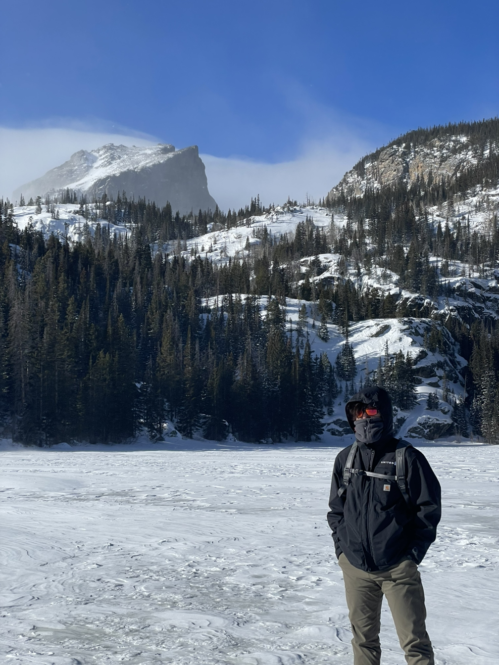 로키산은 해발고도가 3,000미터 넘는 봉우리들이 180여 개 있습니다. 높은 봉을 오르고 싶었지만 쌓여있는 눈 때문에 겨울에는 등반이 금지된 듯 보였어요. 힝구와 나는 평탄한 레이크 트레일을 걸으며 우리 주위를 둘러싼 고봉들의 장엄함에 감탄을 했습니다.