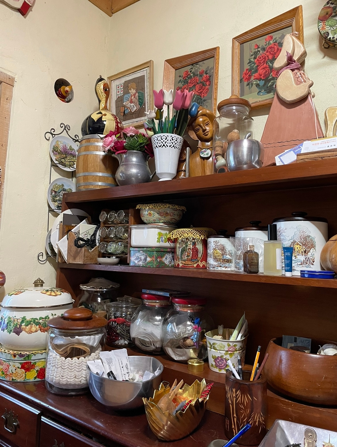 그리하여 내 남편은 초등학교 5학년 미국으로 이민을 오게 되었다. 꽃 분홍 미래를 꿈꾸며 시어머니는 아들 셋과 함께 미국에 도착했다. 그러나 그녀는 또 한 번 좌절할 수밖에 없었다. 시아버지는 아무것도 없는 사람이었다. 은퇴 후, 직업도 없었고 그나마 조금 나오는 연금으로 다섯 식구가 먹고살아야 했다. 그 와중에 혼자서 이리저리 여행을 다니며 이름만 대면 알만한 높으신 회장님들과 어울려 다녔다고 했다. 고집은 또 어찌나 세었는지 매일을 전쟁같이 싸웠다. 딸 같은 아내가 새로운 사회에서 사람 구실을 할 수 있도록 영어를 가르쳐주는 일도 없었다. 뭐라고 불만을 말하거나 징징 거린다 싶으면 무료로 기탁한 물건들을 파는 바자회에 가서 1달러짜리 물건들을 살 수 있게 쇼핑을 시켜주며 불화를 잠재웠다. 시어머니의 물건 사재기와 물건 쌓기 중독은 그곳에서부터 출발했다. 혹여나 이 결혼이 파탄 나면 이때 모운 빈티지 소품들을 한국에다 팔아 아이들을 키워야겠다고 생각했으니 말이다. 도망갈 기회를 보던 그 결혼은 지금까지 이어졌고, 시아버지는 90 노인이 되었다. 어머님이 모았던 소품들도 몇 차례 컨테이너에 실려 태평양을 건넜지만 그 물건들 중 팔린 것은 하나도 없었다. 팔려는 시도가 애당초 없었기 때문이다. 깡통을 주워 팔정도로 어려운 형편에도 쓰레기들은 사 모았던 어머니. 처녀 적, 한국에서 집을 살 정도로 돈을 번 경제적 마인드는 어디로 사라져 버리고 그녀는 물건들을 모으기만 했다.