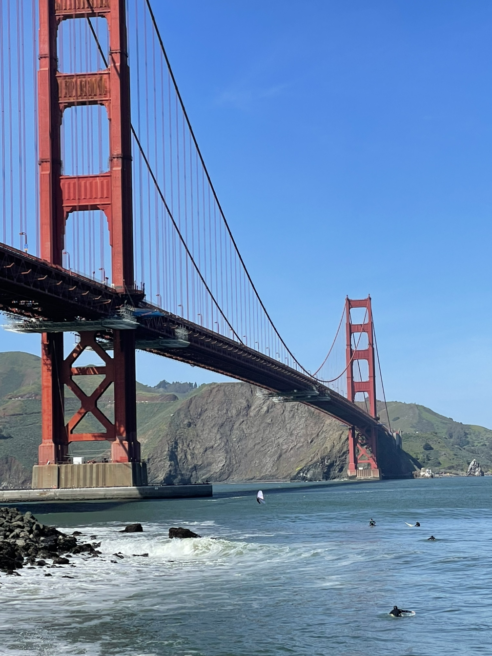 그 공기를 따라 샌프란시스코 만의 가장 끝을 향해 나아가면 붉은색을 띤 세계 최초의 현수교를 만날 수 있다. Golden Gate Bridge. 그렇게 밝지도, 그렇게 어둡지도 않은 고급스러운 붉은빛의 다리는 마주하는 것만으로도 가슴이 탁 트이는 느낌을 받게 된다. 금문교는 샌프란시스코를 방문하는 많은 여행자들이 가장 먼저 찾는 상징적인 장소이기도 하지만 이곳 주민인 나에게도 양보할 수 없는 최애 장소다.