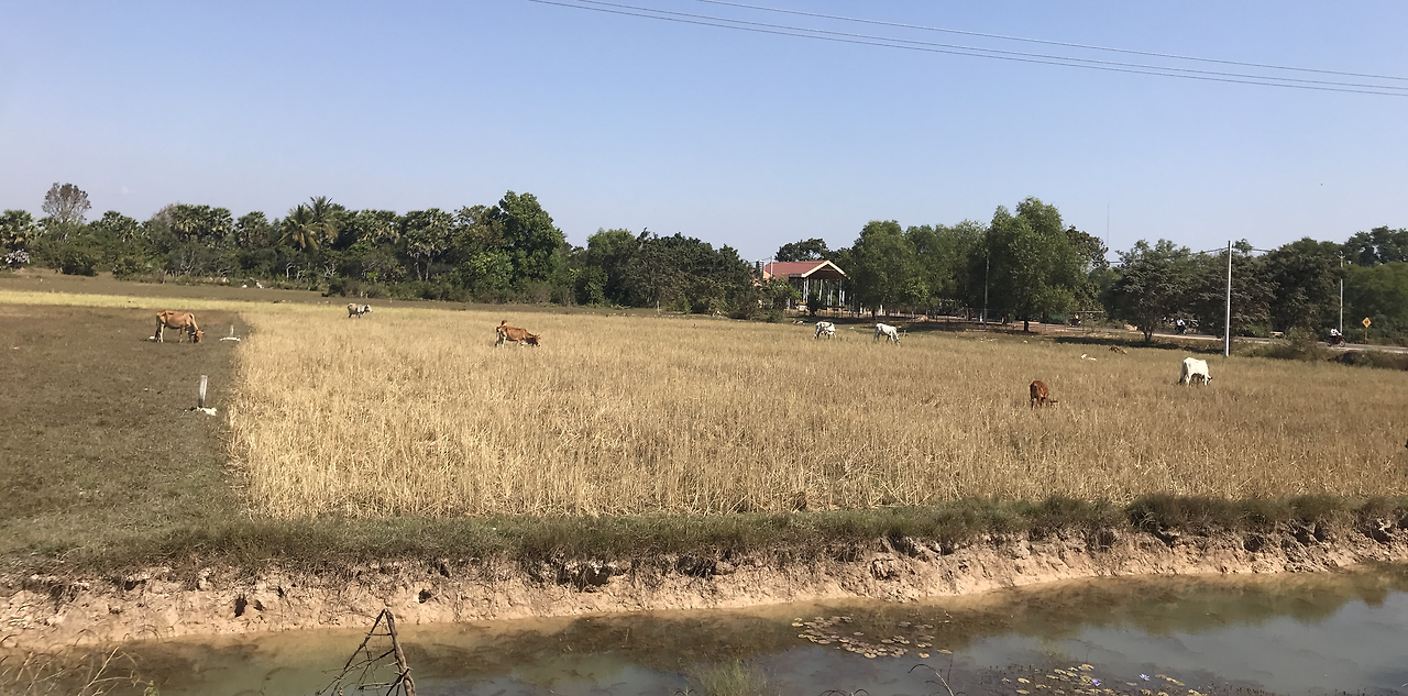 이곳은 왜 가축들도 이리 야위었는지. 뼈에 겨우 살가죽만 붙은 긴 다리의 닭들이 도로가를 이리저리 뛰어다니는 모습은 아슬아슬하고 위태로워 보였다. 소도 앙상한 갈비뼈를 보이는 캄보디아. 이곳에서는 필히 채식을 해야겠다는 마음이 들었다.