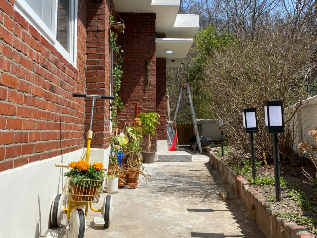 더 자세히 들여다보니 이 벽돌집은 일자로 길쭉하게 생겼었고, 앞마당도 그 모양 따라 좁지만 기다란 모양이었다. 그 대신 뒤뜰이 북한산과 연결되어 있고 꽤 넓었기에 그곳에 새로 문을 내 텃밭을 만들기로 했다. 경계측량을 통해 뒤뜰뿐만 아니라 분리된 조그마한 별채, 앞쪽 계단도 우리 땅임을 알고 있었기에 어떻게 만들어도 우리 마음대로 가꿔갈 수 있다는 게 재미있고 좋았다.