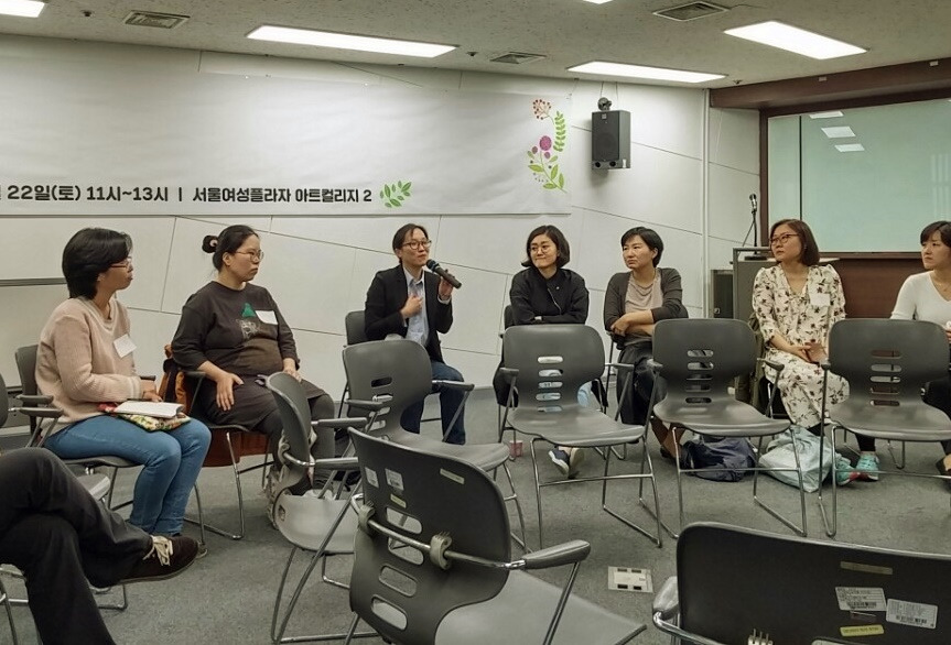 '엄마 정치' 모임은 그런 공감대에서 이루어졌다. 22일 서울여성플라자에 모인 약 30명의 엄마들은 이 자리에서 각자 자신의 이야기를 했다. 사회로부터 강요받는 모성에 대한 압박감, 아이를 키우면서 느끼는 고립감과 단절감, 경력이 단절되는 경험과 그로 인한 내면의 고통에 대해 이야기했다. 그리고 함께 울었다. 그냥 살아온 이야기를 하는 것일 뿐인데, 이야기하는 사람이며 듣는 사람이며 후두둑 눈물을 떨궜다.