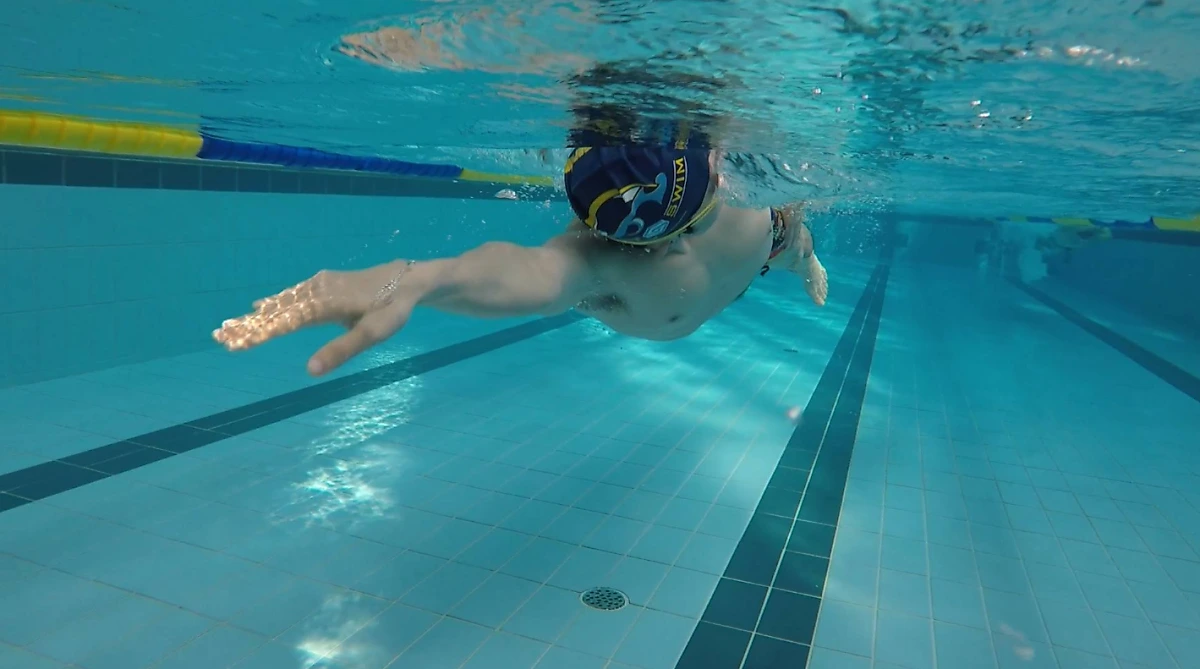 온몸을 바르게 펴서 수영하는 습관을 만들어야 한다.