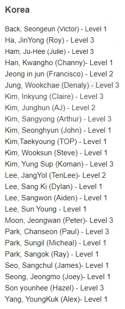 약 30여개국에서 80여명의 정식 코치가 활동을 하고있다..