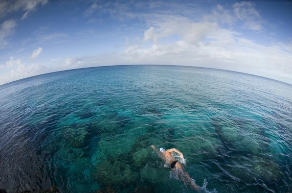 적힌 곳에서 수영을 하였다..
