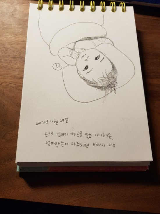 바라보다라는 말은 바로 향하여 본다는 말인데 이 "바로"라는 단어는 바르게. 곧게. 가 아니던가. 또 정확히. 틀림없이. 똑바로 라는 뜻이다. 아기의 시선은 그러했다. 바르게 곧게. 정확하면서 틀림없이. 똑바로 바라본다.
