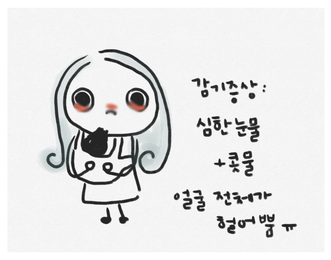 내가 보통 감기에 걸리면 심한 눈물(콧물도 아니고 기침도 아닌 끝없는 눈물이 흐르면서 맛이 가기 시작함)이 흐른다.