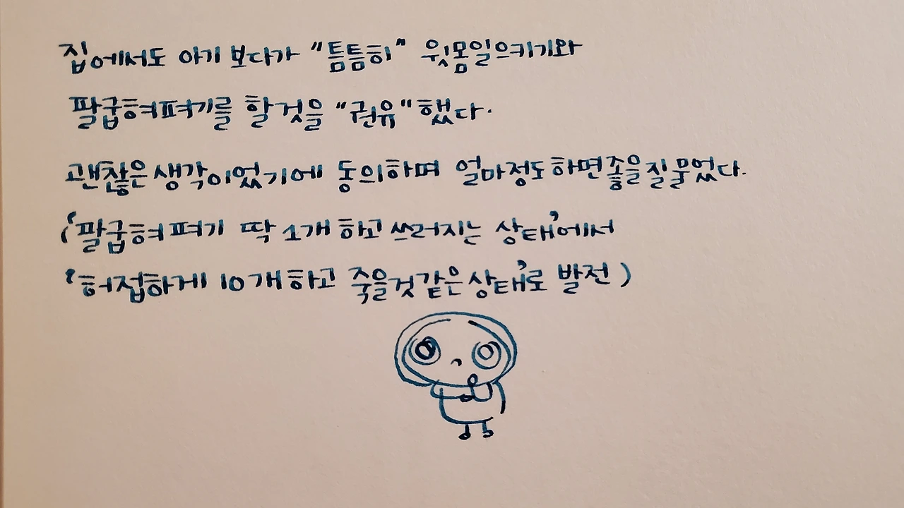 집에서 "틈틈히" "지쳐서 더이상 못 일어날때까지"