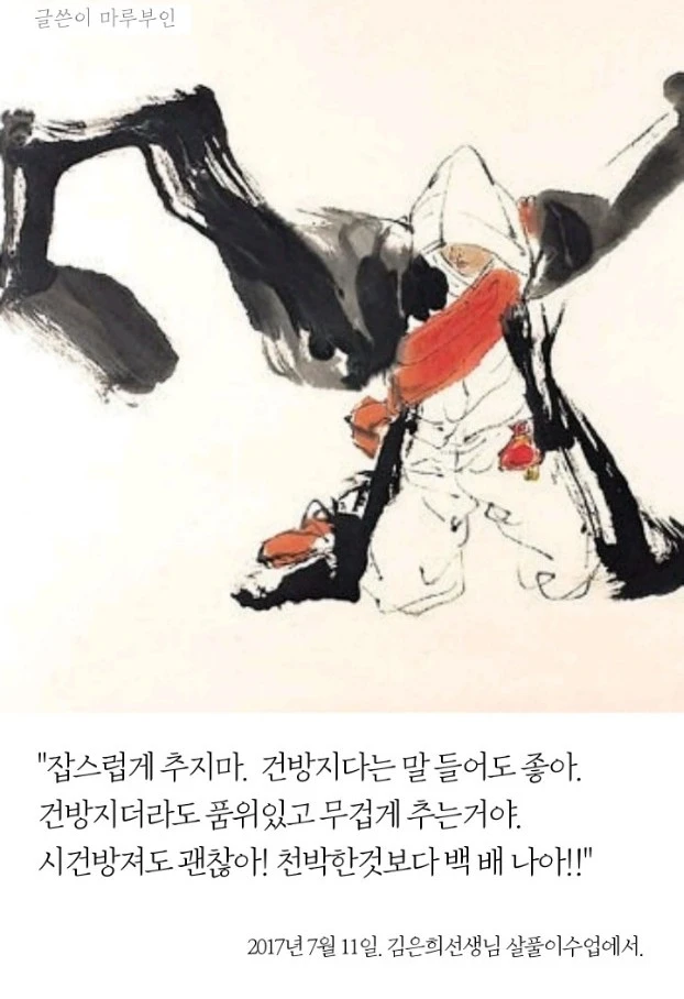 30대 40대 때도 악착같이 춰야 해. 그래야 50살부터 멋이 나고 60살 때 이제야 좀 춤이 보인다 싶을 거고