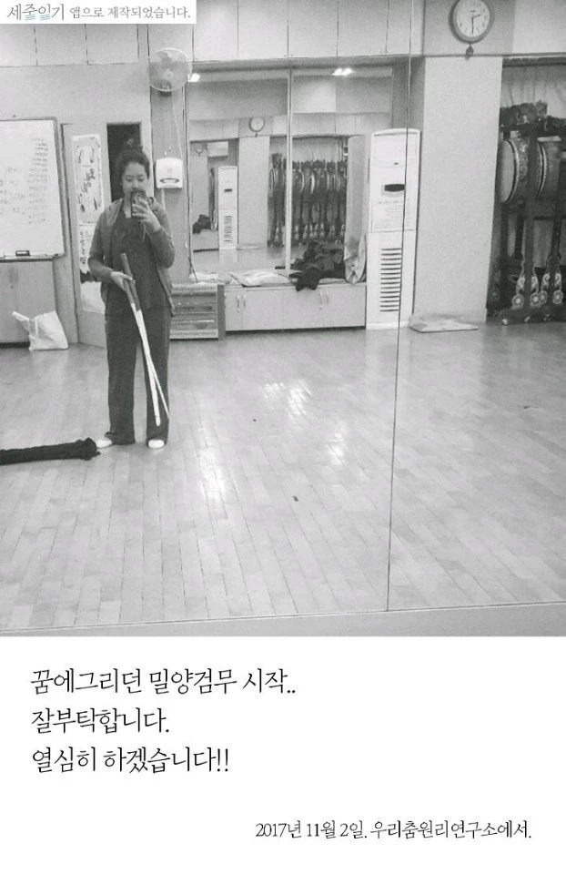 그저 제자면 누구나 다 올라가는 기본무 무대 맨 뒷 줄에서 제일 끝에 서서 어두운 그늘 아래 가려져 내 얼굴이 보이지 않는다고 해도 선생님 무대라는 것에 너무 감격해서 눈물을 흘리고 있을 거라는 걸 미리 알고 있다 ㅋㅋㅋ