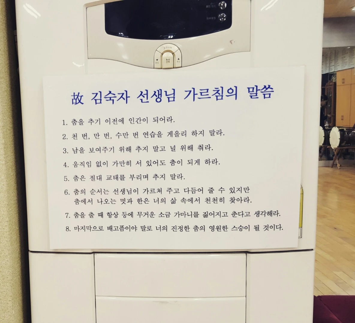 열심히 연습하는 우리들에게 선생님이 다가오더니 너네 그냥 공연 하나 연습한다고 생각하지 마. 공연 하나가 아니라 내 67년이라는 걸 알아라 이것들아.