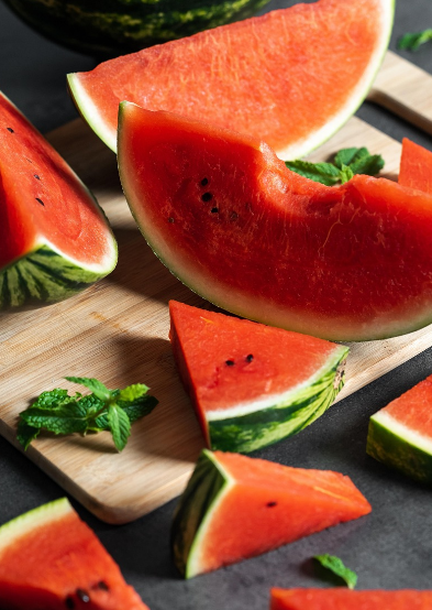 수박 한 조각이 생명의 입 안으로