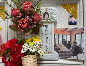 "아, 돌아가셨어. 하늘나라에게 계셔."
