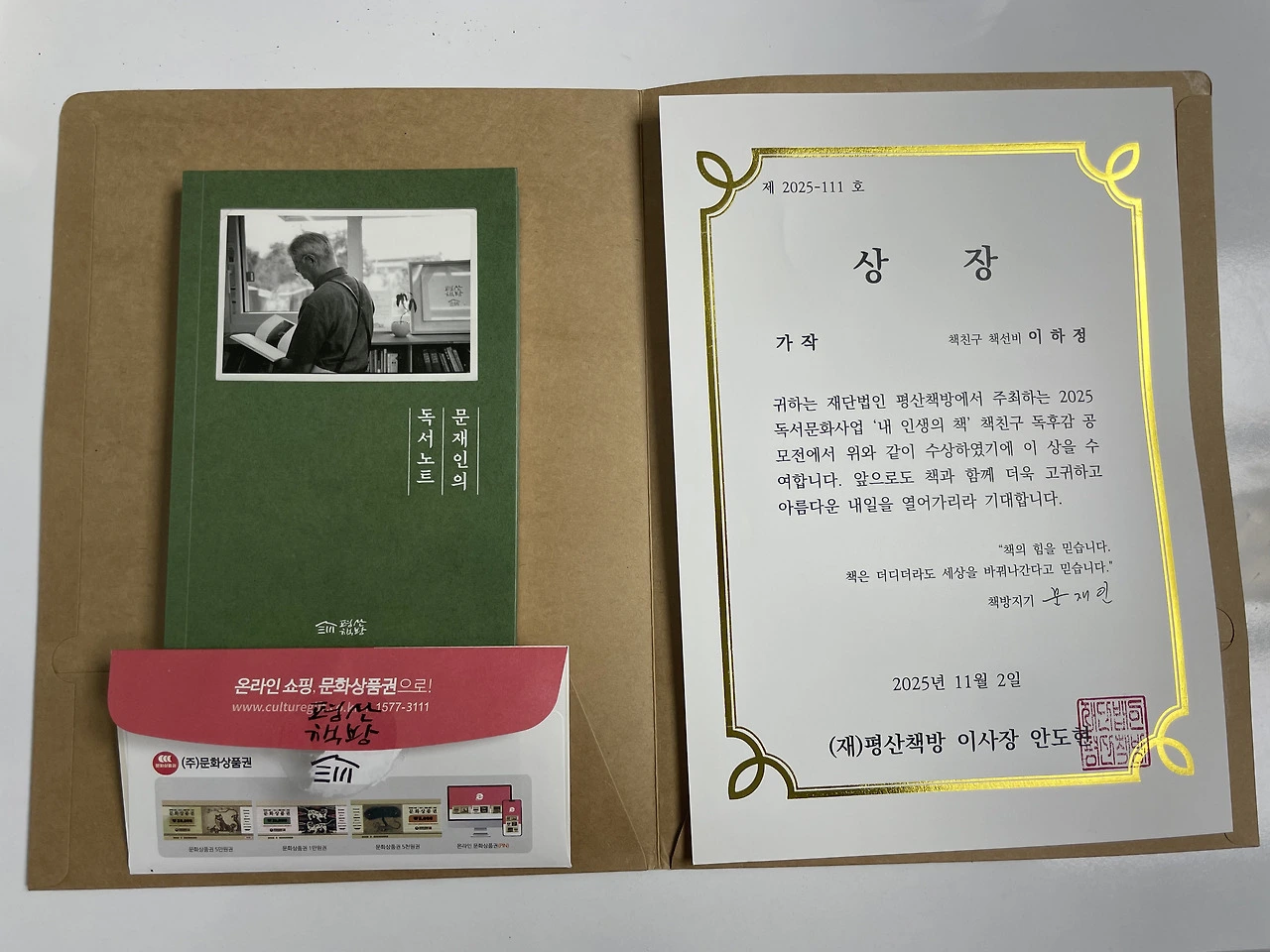 독후감과 에세이 공모에 당당히? 가작으로 당선되었다. 부족하지만 읽을 만하다는 말로 이해하고 싶다. 부지런히 연습하고 쓰다 보면 나아질 것이니 열심히 써보라는 격려로 받아들이고 싶다. 처음에는 사실 누구에게라도 굳이 말하지 않고 싶을 정도로 별 거 아니라고 생각했다. 하지만 이제는 아니다.
