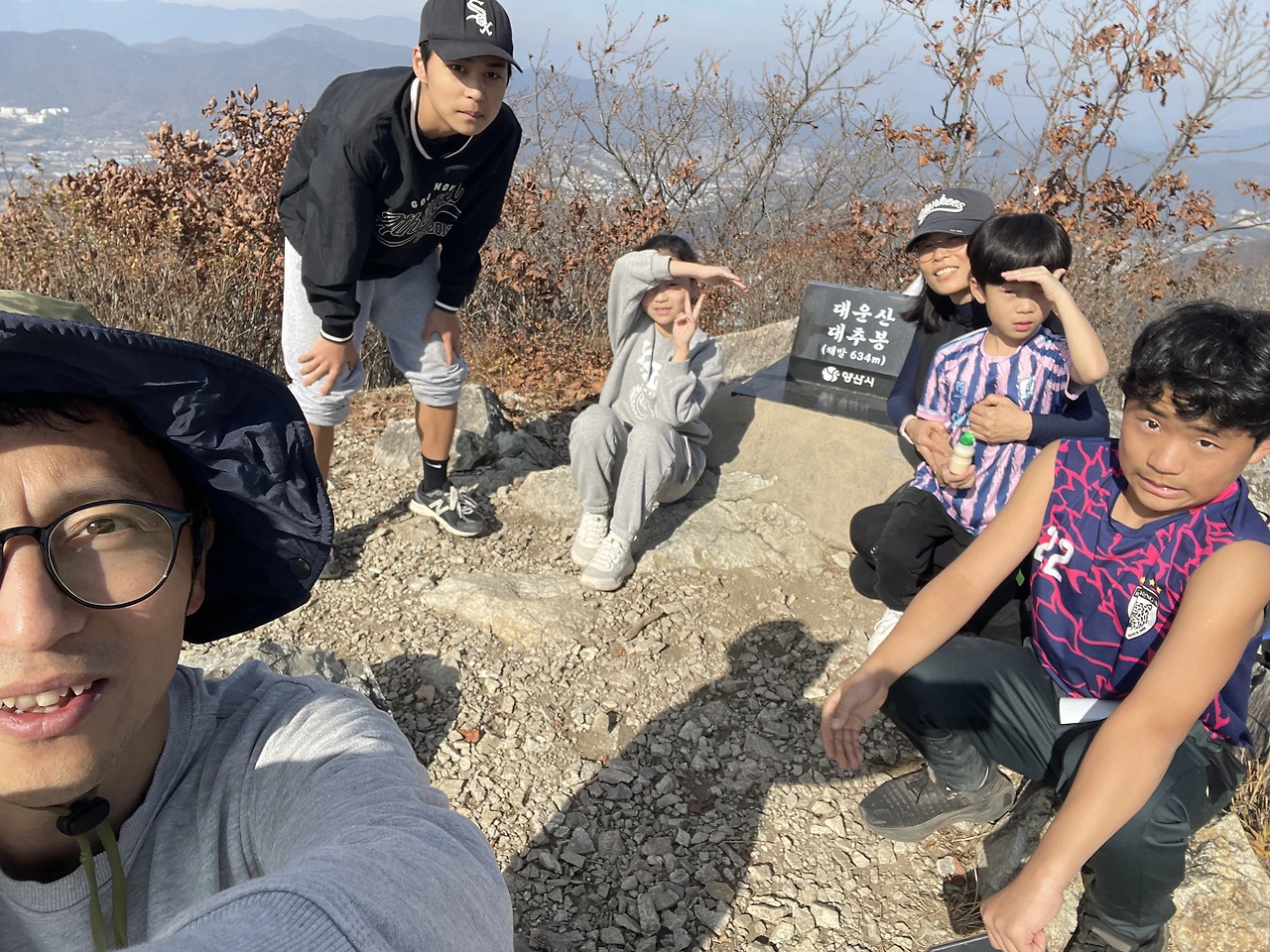 아직 햇살이 따사로운 늦가을에 우리 동네를 둘러싸고 있는 대운산 대추봉에 올랐다. 나즈막길 낙엽은 아름다움의 극치를 뽐냈지만 정상을 향한 가파른 길의 폭신한 낙엽은 미끄러움을 선사했다. 나는 6번이나 미끄러졌고 딸은 두 번이나 넘어져 살짝 다치기도 했다. 날다람쥐 세 아들과 남편은 ‘이건 등산이 아니라 트래킹’이라며 가뿐히 오고 갔다.