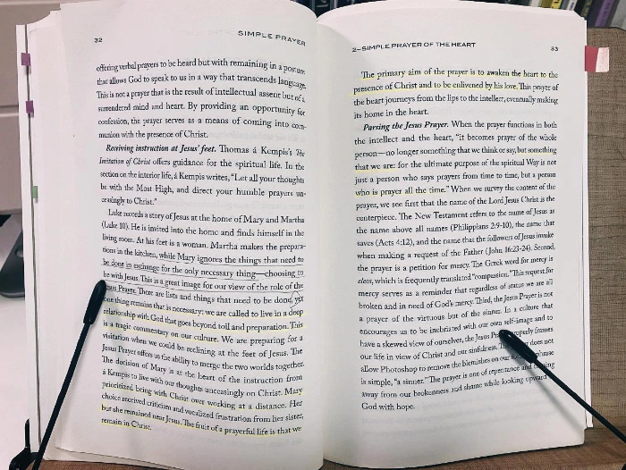오늘은 어제보다 멍 때리는 시간이 줄어들었다. 10분 일찍 책상에 앉았다. 일기를 쓰고 어제 복잡했던 감정을 쏟아놓고 새로운 다짐을 하며 계획을 세웠다. 큐티 대신 신앙서적 원서 한 페이지를 읽었다. 가진 것을 토대로 조금 기도하지 말고 내 존재 그대로 매일 기도하란다.