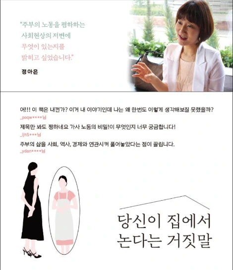 남성 대 여성의 대결구도가 아니다. 모두 자본주의 체제 속에서 착취당하고 있다고 봐도 과언이 아니다. 남편과 아내, 비혼 여성과 기혼 여성, 어머니 세대와 젊은 세대 등 자본주의 제도 가장자리에 있는 약자들끼리 서로 오해하고 혐오하도록 만드는 큰 그림이 무엇인지 보게 된다.
