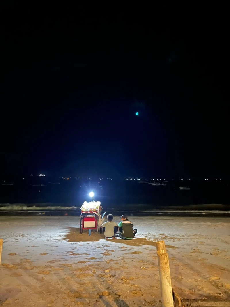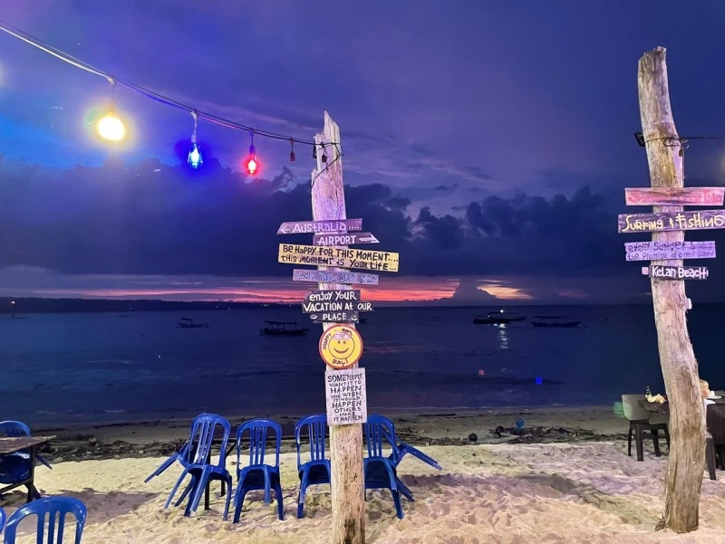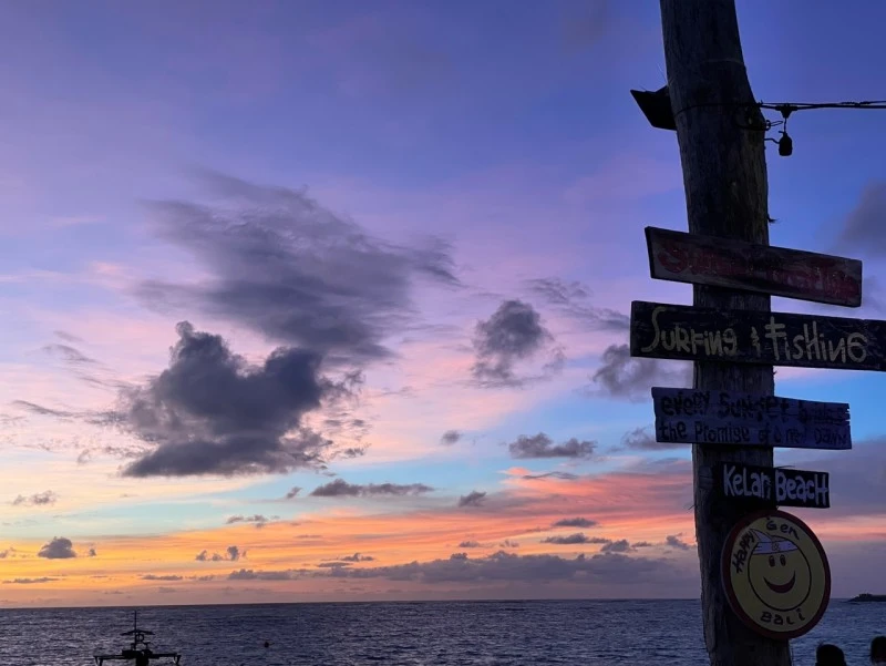 언젠가 해가 질 무렵 짐바란 해변의 시작점부터 끝까지 걸어보았다. 그날 저녁 노을은 붉게 물들었다가 푸르스름한 보랏빛이다가 연한 분홍색으로 변하고 진한 오렌지색이었다가 다시 분홍색과 보라색이 함께 하늘에 선을 그리며 마무리했다. 이런 날은 마치 하늘에서 긴 영화 한 편을 본 것처럼 여운이 길다. 하늘을 놓치고 싶지 않아 해가 다 질 때까지 천천히 걸었다. 노을이 지는 시간 해변을 느릿느릿 걷는 일이 얼마나 멋진지 처음 알았다. 해변 끝에는 warung happy gen 이 있다. 인도네시아 친구가 짐바란 해변 중에 가장 비밀스럽고 예쁜 곳이 있다며 추천해준 바닷가도 바로 이 식당 앞이다 (너무 눈을 반짝거리며 추천해줘서 차마 그 장소를 알고 있다고 말하기 미안했다.)