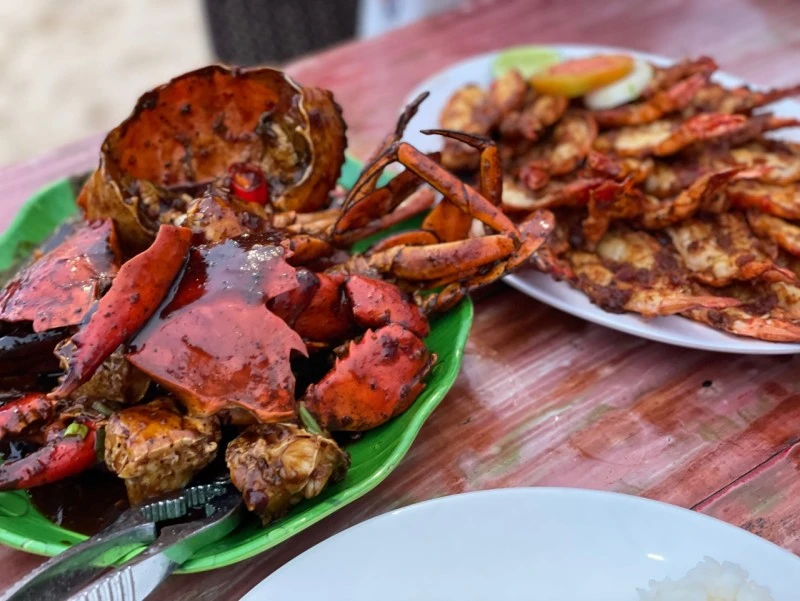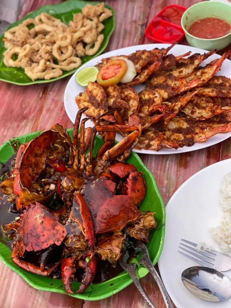 한참 시간을 보내면 그제야 주문한 음식이 나온다. 음식이 나오기까지 삼십 분에서 늦으면 한 시간까지 소요되기 때문에 마음을 넉넉하게 가져야 한다. 매콤 달콤한 양념을 바른 조개와 새우구이, 적당히 짭짤한 오징어 튀김에 블랙페퍼 소스를 뿌린 먹음직스러운 게요리로 오늘도 만족스러운 저녁 식사를 한다. 일찌감치 식사를 마친 어린이는 좀이 쑤신다.