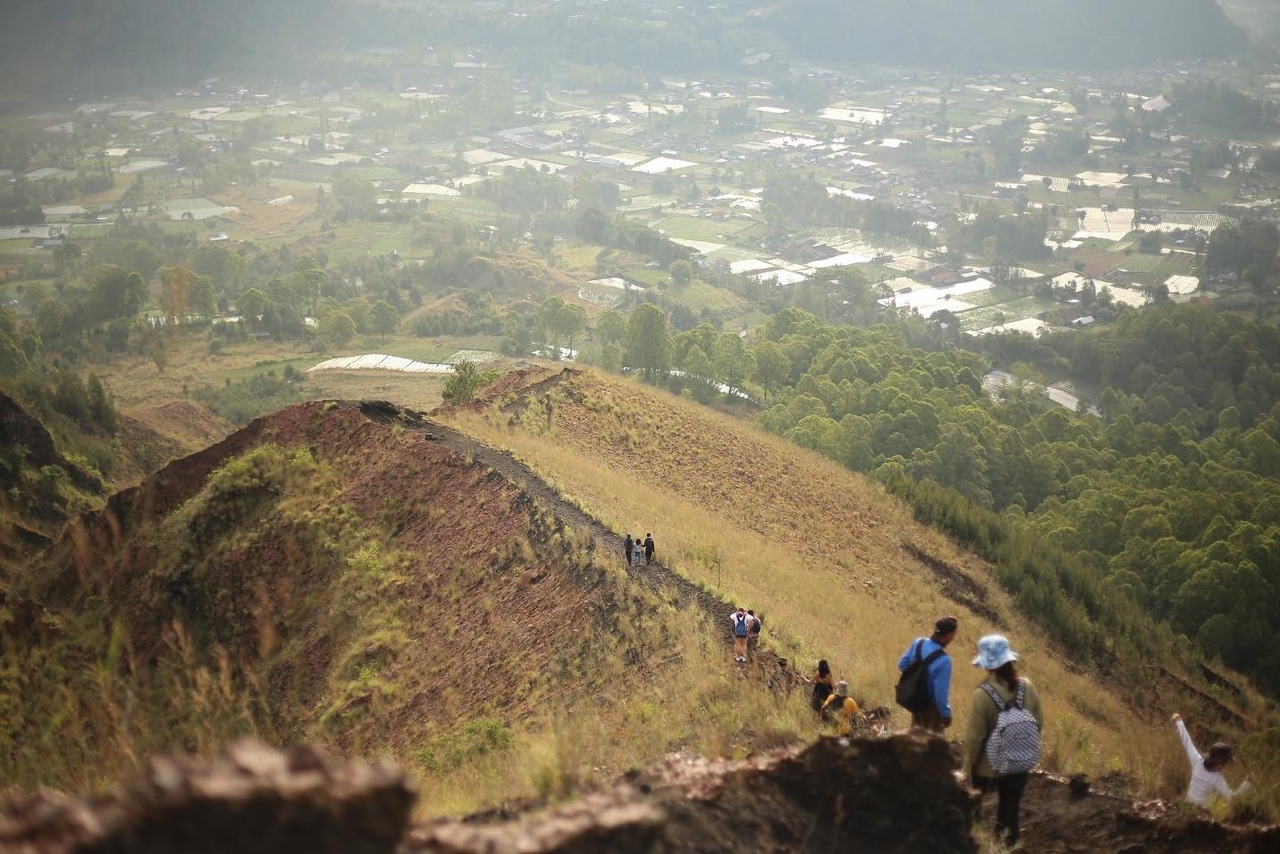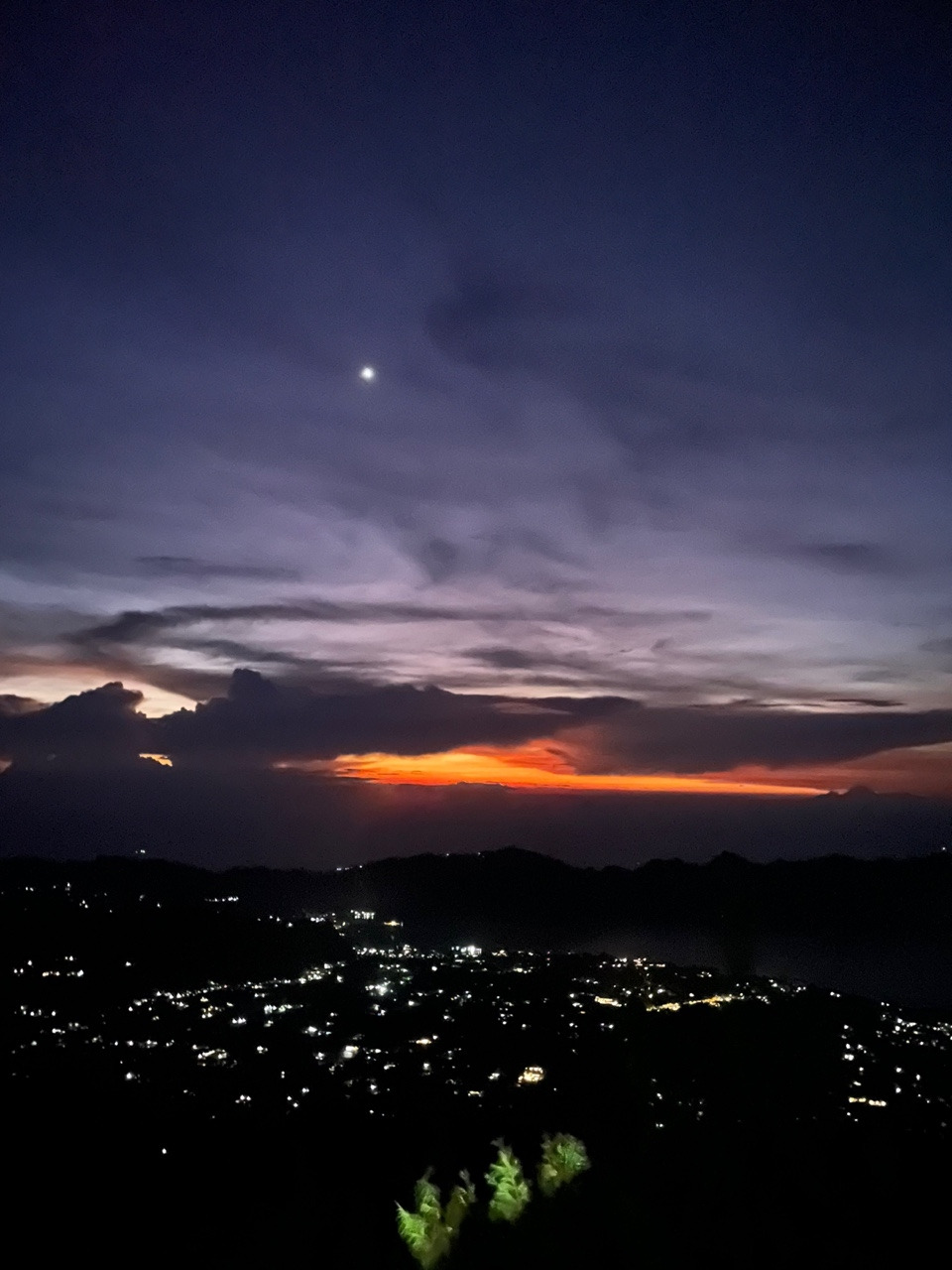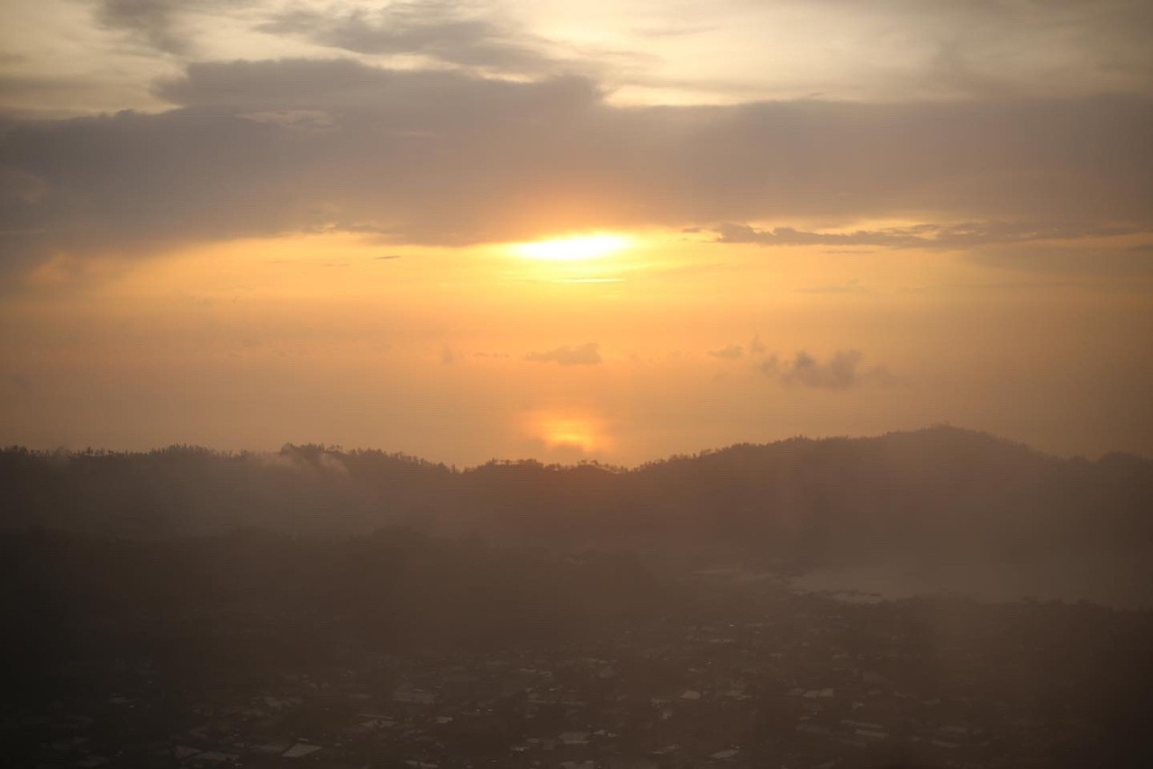 밤새 시끄럽던 풀벌레마저 조용한 새벽 시간, 바투르 등반을 위해 길을 나서는데 가로등 하나 없는 시골길이 무섭다. 이렇게 캄캄한데 산길을 어떻게 오르려나 걱정스럽다. 사실 등산엔 영 소질이 없어서 이 여행을 망설였다. 이번 기회를 놓치면 다시는 이 산에 올라가 볼 일이 없을 것 같아 결국 제 발로 따라나섰으면서도 캄캄한 산길을 오르는 심정이 복잡하기만 하다. 등산로 입구에 도착해서 정상이 있는 곳을 올려다보니 저 멀리 산 한가운데 반딧불이 행렬 같은 등산객들의 랜턴이 부지런히 움직이는 게 보인다. 랜턴이 백개쯤 모여있으니 산이 마냥 캄캄하지도 않다. 바투르 등산 투어 프로그램에서는 등산객 한 명과 산길을 이끌어주는 이 한 명이 동행한다. 나와 함께 산을 오른 건 14살 까덱이다. 마음으로 파이팅을 외치고 까덱을 따라 첫발을 내딛는 순간부터 되돌아가고 싶다. 이 길은 우리가 알고 있는 등산로가 아니다. 커다란 바위를 곱게 갈아 쌓아 둔 언덕을 오르는 것처럼 발밑이 미끄럽다. 하필이면 밑창이 미끄러운 운동화를 신어서 한발 오르면 두발 밀려내려온다. 도저히 안 되겠다 싶어서 네발로 기었다. 우리 내려갈까 소리가 목구멍까지 찼는데 신바람이 나서 앞으로 뛰어가는 어린이와 나보다 더 속도가 처지는 친구사이에 껴있으니 괜히 힘 빠지게 할까 싶어 목까지 차오른 말을 꿀꺽 삼켰다. 이를 악물고 산길을 헤치며 올라간다. 바위를 찾아 밟고, 나무를 붙들고 때론 미끄러지면서 나보다 세 뼘쯤 작은 까덱에 의지해 꾸역꾸역 올라간다. 돌아갈까 소리를 백번쯤 참으니 어느새 절반 정도 왔다고 한다. 언덕에 서서 한숨 돌리는데 눈앞에 여명이 펼쳐졌다. 태어나서 이런 광경은 처음 봐서 괜히 울컥했다. 하늘에 달이 있는데 해가 슬그머니 올라오고 있는 게 한눈에 들어온다.