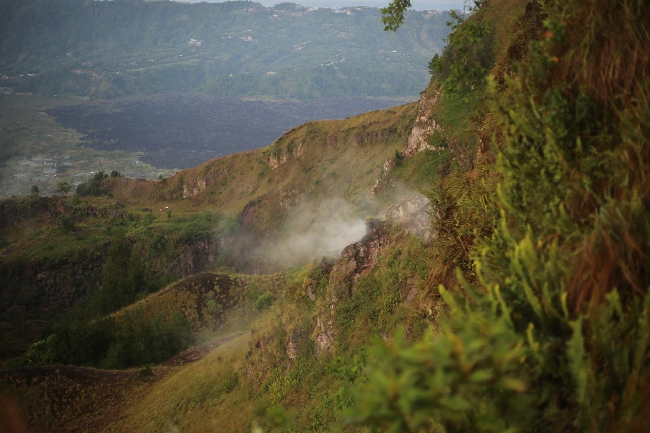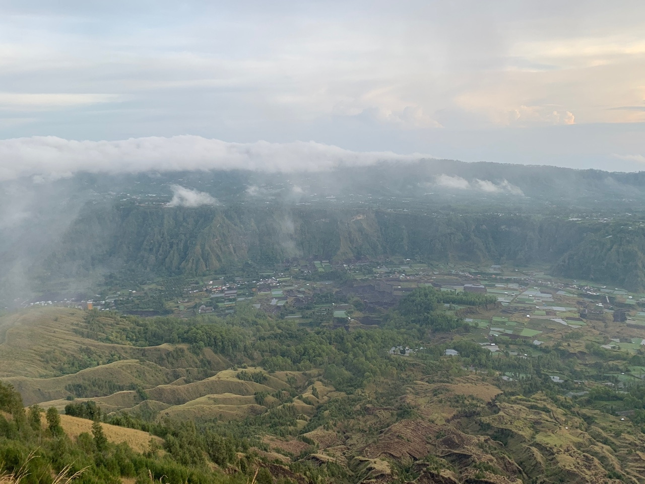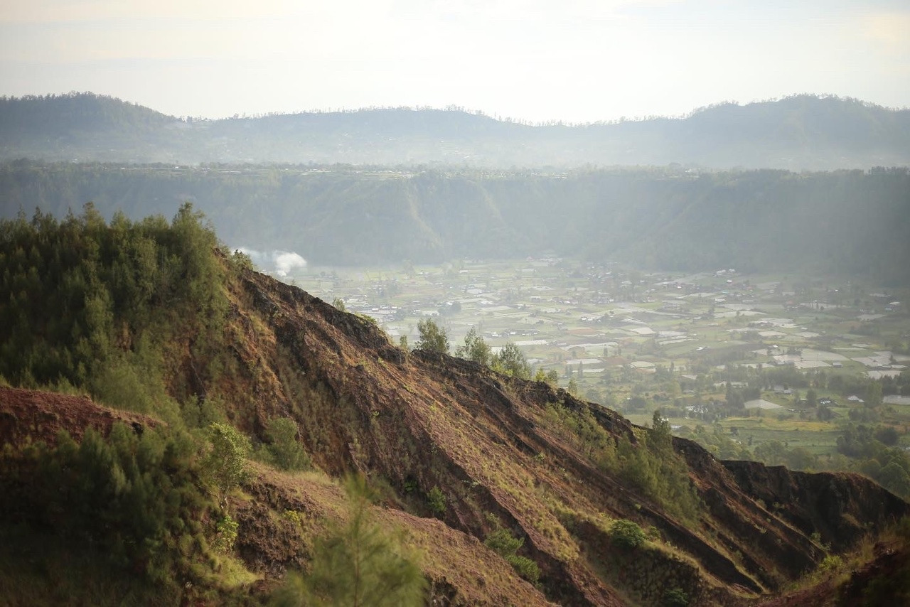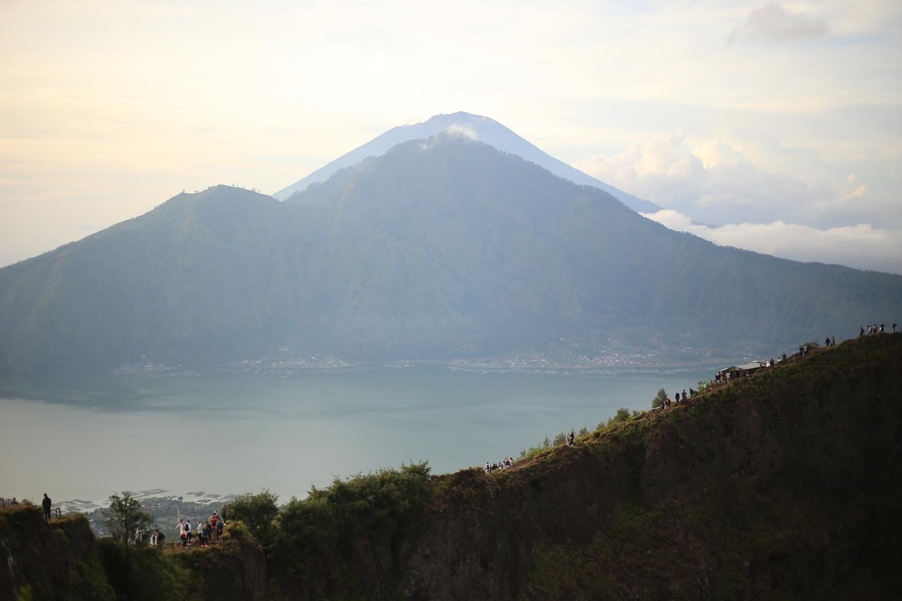밤새 시끄럽던 풀벌레마저 조용한 새벽 시간, 바투르 등반을 위해 길을 나서는데 가로등 하나 없는 시골길이 무섭다. 이렇게 캄캄한데 산길을 어떻게 오르려나 걱정스럽다. 사실 등산엔 영 소질이 없어서 이 여행을 망설였다. 이번 기회를 놓치면 다시는 이 산에 올라가 볼 일이 없을 것 같아 결국 제 발로 따라나섰으면서도 캄캄한 산길을 오르는 심정이 복잡하기만 하다. 등산로 입구에 도착해서 정상이 있는 곳을 올려다보니 저 멀리 산 한가운데 반딧불이 행렬 같은 등산객들의 랜턴이 부지런히 움직이는 게 보인다. 랜턴이 백개쯤 모여있으니 산이 마냥 캄캄하지도 않다. 바투르 등산 투어 프로그램에서는 등산객 한 명과 산길을 이끌어주는 이 한 명이 동행한다. 나와 함께 산을 오른 건 14살 까덱이다. 마음으로 파이팅을 외치고 까덱을 따라 첫발을 내딛는 순간부터 되돌아가고 싶다. 이 길은 우리가 알고 있는 등산로가 아니다. 커다란 바위를 곱게 갈아 쌓아 둔 언덕을 오르는 것처럼 발밑이 미끄럽다. 하필이면 밑창이 미끄러운 운동화를 신어서 한발 오르면 두발 밀려내려온다. 도저히 안 되겠다 싶어서 네발로 기었다. 우리 내려갈까 소리가 목구멍까지 찼는데 신바람이 나서 앞으로 뛰어가는 어린이와 나보다 더 속도가 처지는 친구사이에 껴있으니 괜히 힘 빠지게 할까 싶어 목까지 차오른 말을 꿀꺽 삼켰다. 이를 악물고 산길을 헤치며 올라간다. 바위를 찾아 밟고, 나무를 붙들고 때론 미끄러지면서 나보다 세 뼘쯤 작은 까덱에 의지해 꾸역꾸역 올라간다. 돌아갈까 소리를 백번쯤 참으니 어느새 절반 정도 왔다고 한다. 언덕에 서서 한숨 돌리는데 눈앞에 여명이 펼쳐졌다. 태어나서 이런 광경은 처음 봐서 괜히 울컥했다. 하늘에 달이 있는데 해가 슬그머니 올라오고 있는 게 한눈에 들어온다.