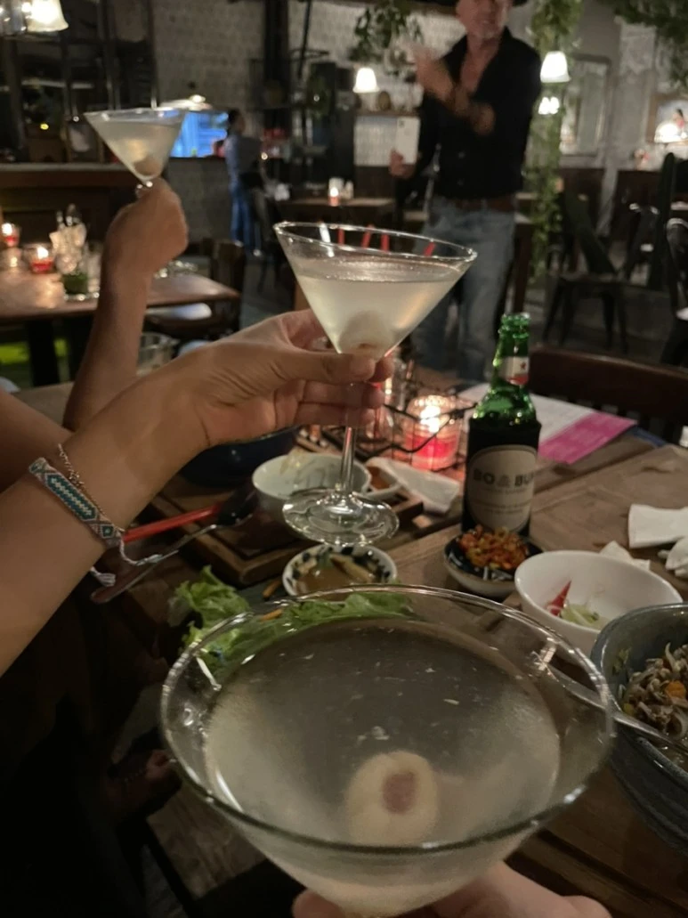 우리가 앉은 옆좌석에는 5명의 중년 혹은 노년의 사람들이 있었다. 화장실에서 말을 건넨 사람도 그중 하나다. 손 씻으러 간 사이 이미 이 두 테이블은 합의를 마치고 칵테일을 주문한 상태였다. 쌀국수가 나오기도 전에 칵테일이 먼저 나와서 다 함께 건배를 했다. 어림짐작으로 50대 혹은 60대인 이 5명의 친구들은 각각 유럽의 다른 나라에서 왔다고 한다. 그중 발리에서 식당과 리조트를 운영하는 친구를 만나기 위해 어렵게 시간을 맞춰 2년 만에 모여 다 함께 발리를 여행 중이라고 했다. 자리가 나란히 있으니 칵테일 한잔으로 끝날 리 없다. 계속해서 새로운 칵테일을 주문하고 건배를 했다. 로마에서 온 백발의 신사 (이렇게 말고 달리 표현할 길이 없다.)는 잘 다려진 검은색 긴 셔츠 소매를 반쯤 걷은 채 적당히 색이 바랜 청바지를 입고 멋진 플라멩코를 보여주었다. 꽤 오랜 시간 춤을 배웠다는 로마 어른의 깔끔한 동작이 멋있어 쌀국수가게 한복판에서 열심히 박수를 쳤다. 곱슬머리 아저씨는 이탈리아 특유의 제스처를 가르치느라 여념이 없다. 맛있을 땐 손가락을 모아 입에 대고 가벼운 키스를 한다. OMG은 맘마미아! 라 외치며 이마에 손가락을 대고 휘파람새처럼 휘이잉 하는 모양새로 손을 한 바퀴 돌리면 된다는데 그 모습이 귀여워서 열심히 따라 했다. 이탈리아에서 레스토랑을 운영한다는 맘마미아 아저씨는 동글동글하고 컬이 굵은 곱슬머리에 배가 산타클로스만큼 나왔는데 손동작을 할 때마다 눈을 크게 뜨고 표정까지 과장되게 보여줘서 마치 유치원 선생님 같았다. 다섯 명이 모두 다른 나라 출신이라 어떻게 이 사람들이 친구가 된 건지 궁금했다. 이미 30년째 친구로 지내고 있고 처음엔 다 같은 나라에서 살다가 각자의 일을 찾다 보니 뿔뿔이 흩어졌다고 한다. 모처럼 시간을 맞춰 발리에 와서 짧은 여행을 함께 하고 있는 중이고 오늘은 우붓 위쪽으로 관광을 다녀왔는데 풍경이 너무 멋져서 좋았다며 우리에게도 발리에 왜 왔는지 물어본다. 우리는 여기 살고 있다고 하니 너무 아름다운 곳에 살고 있다며 언젠가 그들이 살고 있는 나라에도 와보기를 권유하고 자기 나라 자랑을 한다. 이 모든 친구들을 한데 모이게 한 사람은 조지 클루니와 크리스토퍼를 묘하게 반반 섞은듯한 미남 아저씨다. 발리에 산지 벌써 20년이 됐다고 하는데 짱구에서 꽤 크고 유명한 가게를 운영하고 있다고 곱슬머리 아저씨가 신나게 자랑을 한다. 이름만 들어도 단박에 알만큼 커다란 가게라 놀란 우리에게 별거 아니라며 손을 휘저어 친구를 말린다. 잘생긴 데다 겸손하기까지 한 이 미남 아저씨는 왁자지껄한 친구들 틈에서도 말없이 웃기만 한다. 오랜 친구들이 한자리에 모여 있는 모습을 바라보고 있는 것만으로도 흐뭇해 보였다. 저 미소를 보고 있자니 그 마음이 내게도 전달돼서 나도 이 사람들이 꼭 십년지기인 것만 같아 계속 웃게 된다. 각자 사업을 하고, 인생에 열중하느라 바빠 그렇잖아도 모이기가 어려운데 코로나까지 터졌으니 오랜만에 만난 친구들과 함께 하는 이 시간이 얼마나 소중할까. 이런 분위기에 한발 담그고 있는 게 오늘의 행운이다. 웃고 떠들다 보니 시간이 쏜살같이 흘러서 어느새 영업시간이 끝나간다. 내일 아침도 신나게 발리 투어를 떠날 거라는 아저씨들과도 이제 헤어질 시간이다. 충전을 맡긴 배터리를 찾으러 가는 척하며 친구들 몰래 계산을 하러 갔는데 직원이 날 보며 웃기만 한다. 영문을 몰라 계산대에 멀뚱하게 서있는데 이탈리아 아저씨가 다가왔다.