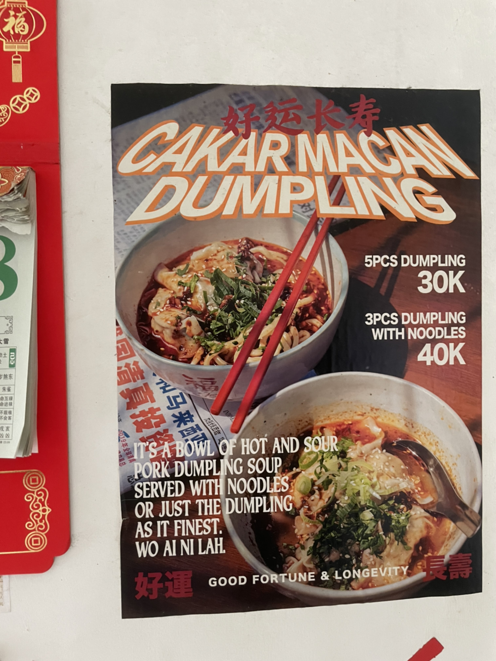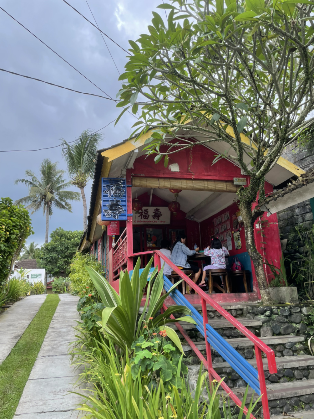 우붓 안동 골목에 (안동 아니고 Andong) Fu Shou Noodle Club이라는 작은 중식당이 있다. 언뜻 보면 크레파스로 찐하게 색칠한 것 같은 빨강 파란색 작은 가게는 뒤로 보이는 발리의 쨍한 하늘과 잘 어울린다. 코로나가 시작되기 전에는 중국인 단체 관광객들이 아침부터 줄을 서서 먹을 정도로 유명하고 바쁜 식당이라고 한다. 면이 쫄깃하고 속에 숨겨진 매콤한 양념이 한국사람들 입맛에도 잘 맞아 여행객들의 평도 좋다고 했다.
