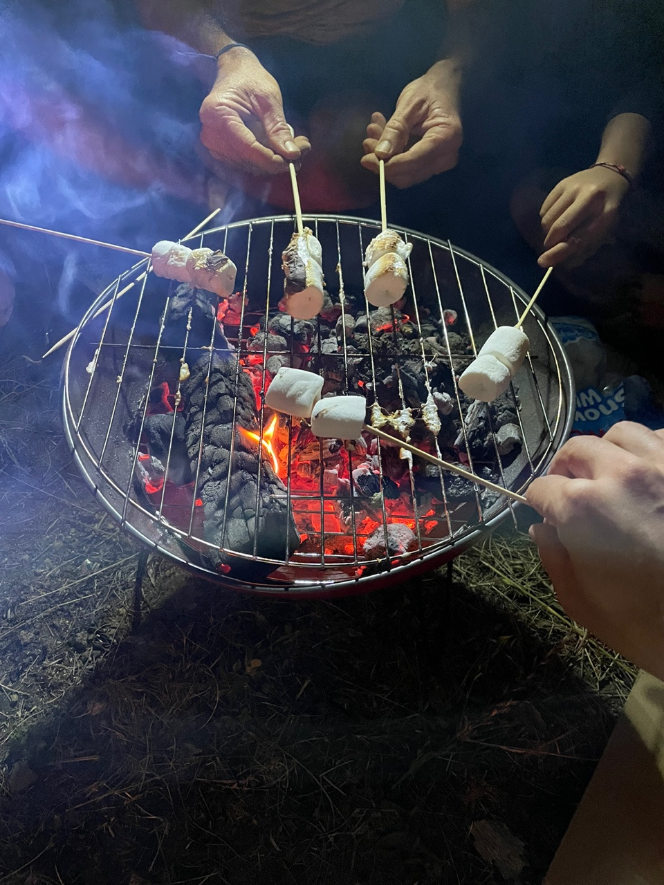 다시 발걸음을 서둘러 커피농장으로 간다. 구불구불한 산길을 지나 드디어 커피 농장에 도착했다. 오늘 우리와 함께 캠핑할 사람들은 유치원 동창인 어린이 열명과 그 부모들이다. 국적도 다양하다. 짐바브웨, 프랑스, 독일 등 다 다른 국적을 가진 사람들이 모였다. 먼저 도착한 사람들이 화로대에 불을 붙이고 있다. 외국 사람은 야외 활동을 엄청 잘할 거라는 편견을 가지고 있었는데 파사삭 부서졌다. 한 시간쯤 부채질을 하고 나서야 불이 붙었다. 캠핑이 취미인 나는 참견이 하고 싶어서 마음이 들썩들썩했다가 땀을 뻘뻘 흘리며 열심히 불 붙이는 아빠를 응원하는 어린이를 위해 가만히 기다렸다. 이렇게 열심히 불을 붙인 화로대에서 소시지를 구웠다. 아이들에게 소시지를 꽂아 하나씩 건네주는 성인 남성의 표정이 어찌나 뿌듯해 보이던지 보고 있는 내가 웃음이 났다.