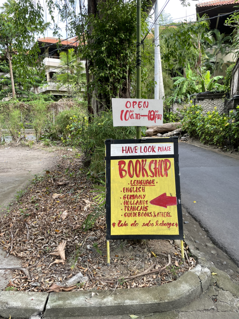 안에는 급하게 만든 것처럼 생긴 책장 몇 개에 세계 각국의 언어로 된 책들이 잔뜩 꽂혀있었고 오래된 책 특유의 곰팡이 냄새가 가득했다. 아마도 이 책들은 가방이 무거워 덜어낼 짐을 궁리하다 큰 고민 없이 빼버린 관광객들의 책일 것이다. 해변에서 태닝을 하며 읽으려고 챙겼거나 그저 조용한 시간을 보내며 혼자 카페에 앉아 읽어야지 하며 들고 왔을 책들. 발리 여행 중 늘어난 짐 무게를 덜어내기에 여행 중 다 읽은 책은 최우선순위일 것이다.