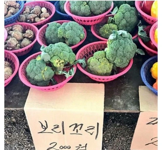 브로콜리는 한국의 시장에서 보리꼬리가 되기도 하고, 부루커리가 되기도 하고, 부르크리가 되기도 한다. 들리는 발음대로 글자를 추정해 적은 브로콜리 간판은 젊은 세대들 카메라에 담겨 온라인을 떠돌며 재밌는 이야기로 소비된다.