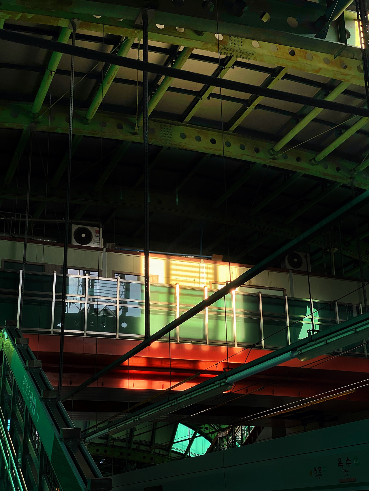 플랫폼 사이로 스며드는 빛의 갈래들을 지켜보고 있는 건 재미있는 일이에요. 시시각각 빛의 형태도 바뀌는 것도 흥미롭고, 차갑기만한 철골 구조물이 따뜻하게 느껴지기도 하죠. 여기저기 비추고 있는 빨갛고 노란 가을빛을 직접 담아보세요.