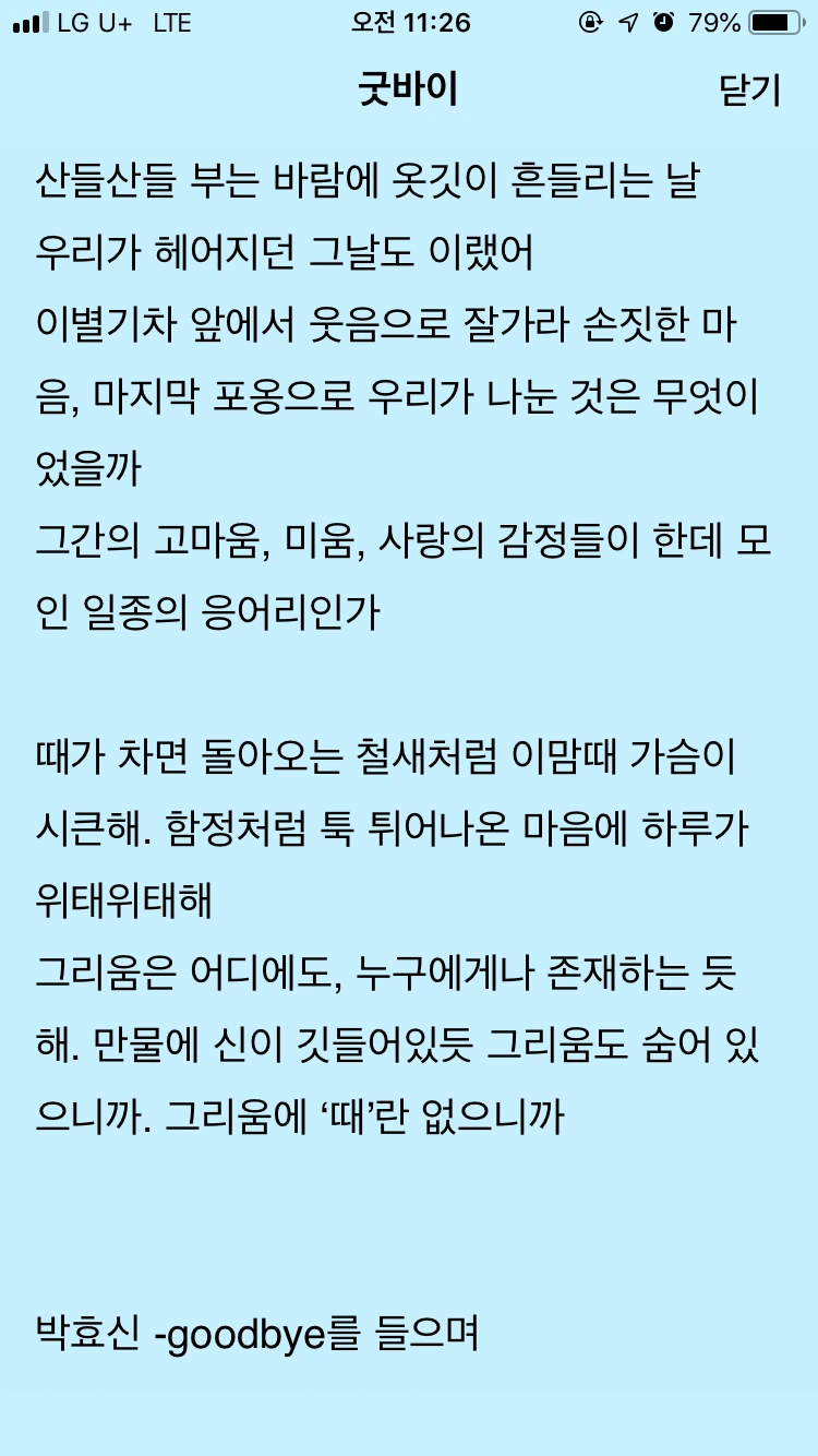 마음을 쓰기위해 글을 씁니다. 쓰지 않으면 없었던 게 될 것 같아서 쓴다. 달, 초록색, 러닝을 좋아하고, 이걸 보는 당신도 좋아합니다.