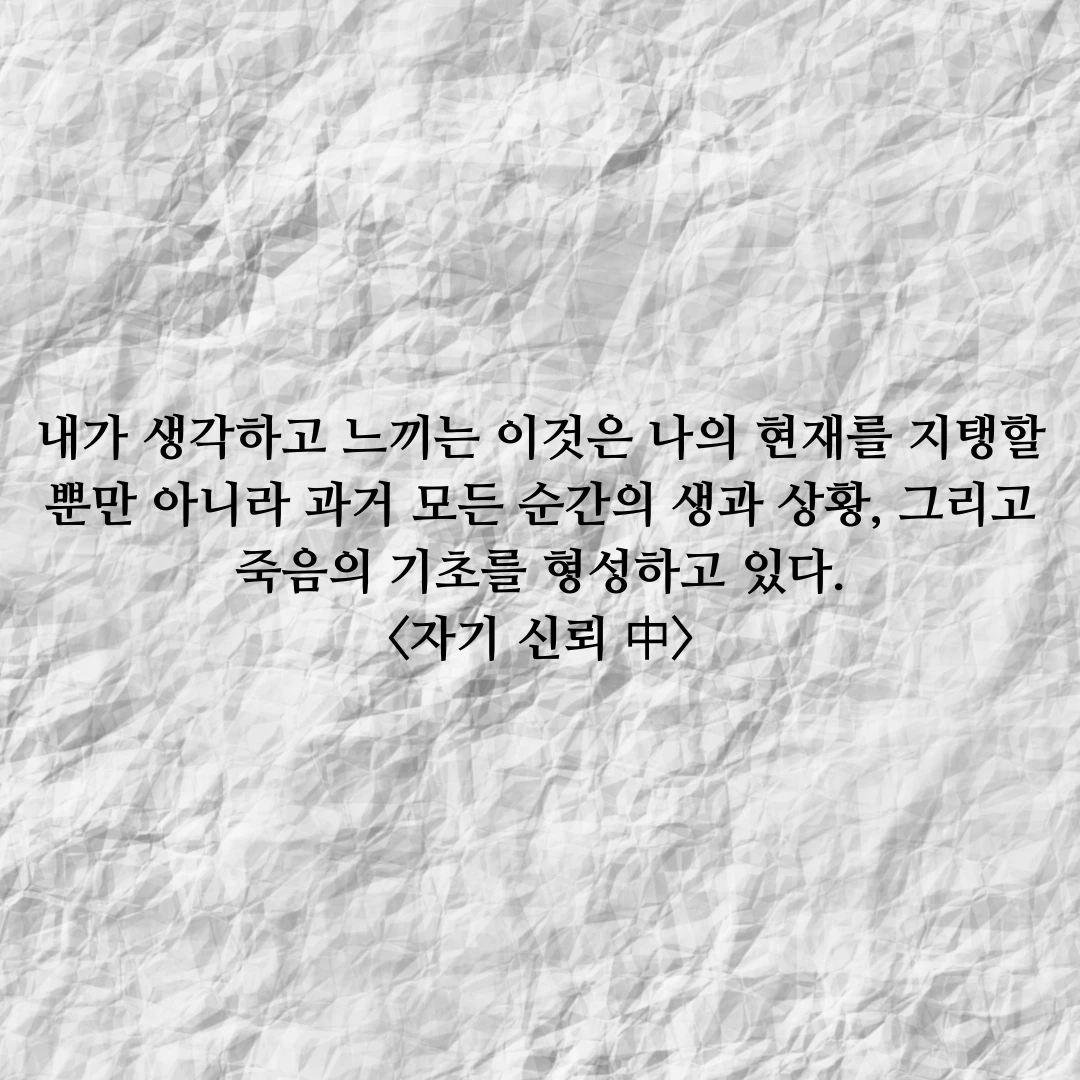 내가 생각하고 느끼는 이것은 나의 현재를 지탱할 뿐만 아니라 과거 모든 순간의 생과 상황, 그리고 죽음의 기초를 형성하고 있다.
