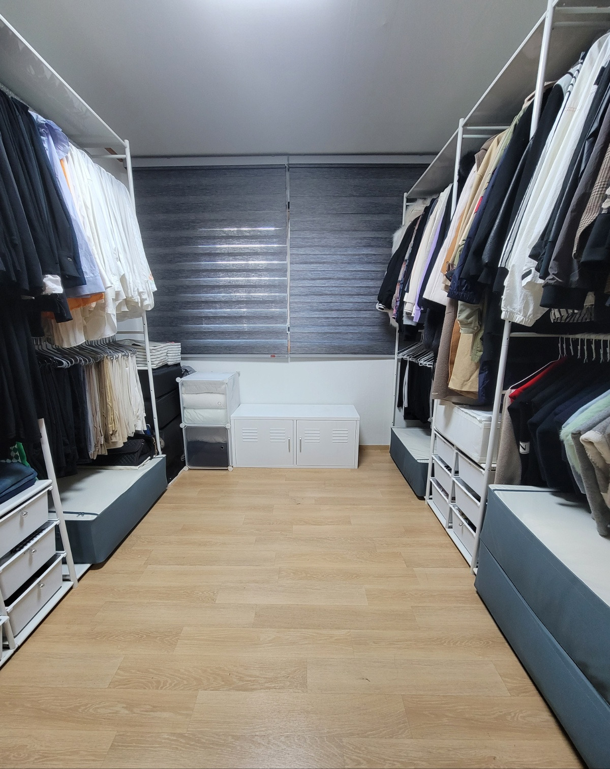 그래서 오픈된 행거와 문이 있는 장이 같이 있다면 남자옷을 오픈된 공간에 두는 경우도 많다.