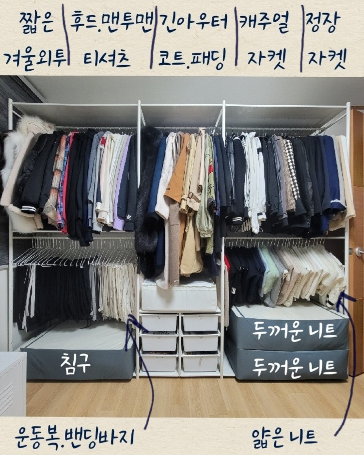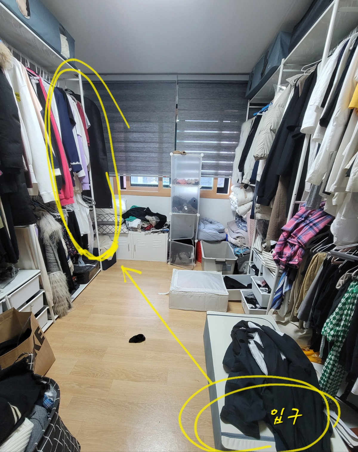 * 문제점 : 두서없이 자리 잡은 옷들, 둘 곳 없는 침구의 정리