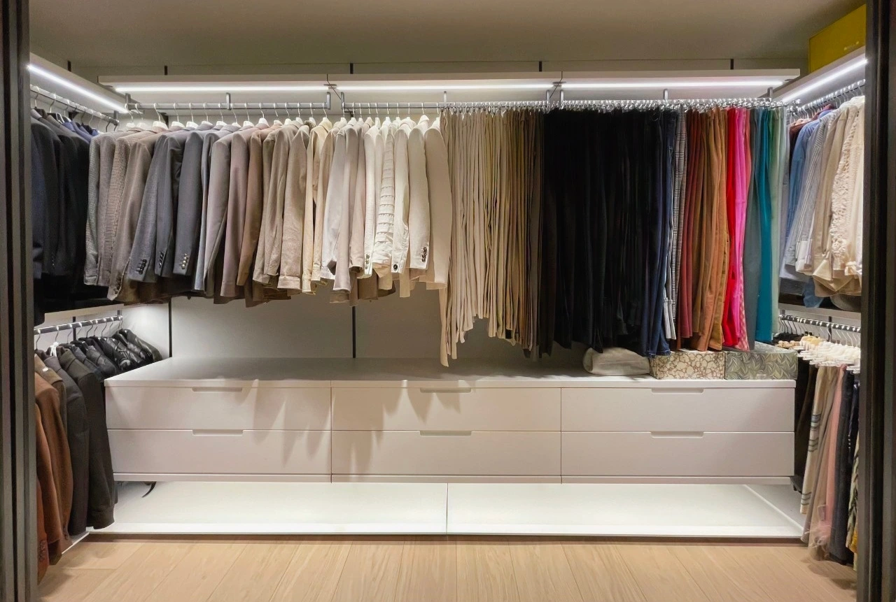 옷방에서 가장 눈에 잘 띄는 위치에는 가능하면 긴소매 셔츠나 정장 등 보기에 단정해 보이는 옷들을 배치해 주게 된다.