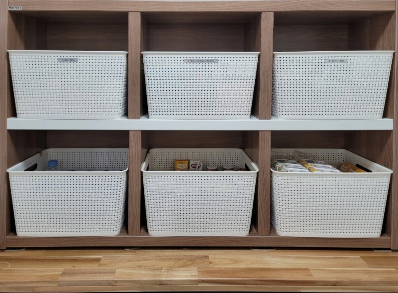 이때 바구니를 활용해서 정확하게 분류하고 편리하게 사용할 수 있도록 정리해 준다면 날짜를 지나치지 않고 구입한 물품 전부를 정상적으로 소비하는데 도움이 되는 건 분명하다.