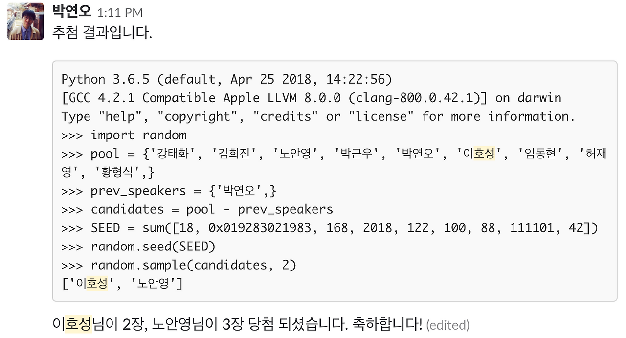 첫 번째로 발표자를 미리 정하지 않고, 발표하기 하루 전에 발표자를 선정했다.