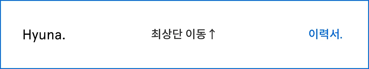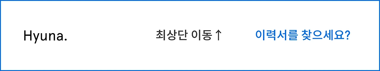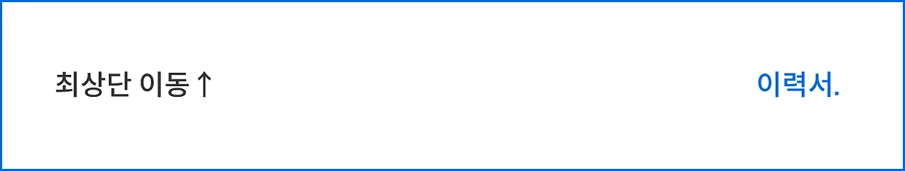 이렇게 넣었습니다. 가능하면 영어로 적기보다는 한글로 적고 싶었고, 위로 이동 이라고 적으면 뭔가 위로가 sorry / comforting 같이 부정적인 느낌으로 받아들일 수도 있을 것 같아서(..) 상단 / 최상단 이동 이라고 적었습니다. 이렇게 적으니 뭔가 이력서를 찾으세요? 라는 글이 길고, 아무래도 그 덕에 간격 또한 밸런스가 깨지죠.