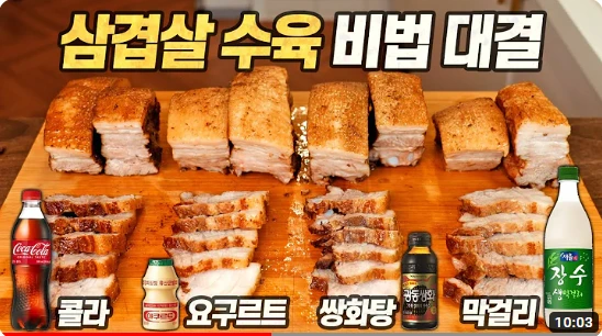 어쩌다 육식맨님의 영상을 하나 봤는데, 거기서 콜라·요구르트·쌍화탕·막걸리로 보쌈을 만들더라고요. 단순히 만들고 끝내는 내용은 아니었고 육식맨님이 그중에서 나름의 순서를 매기셨는데, 막걸리가 1등을 하는 아름다운 결말의 영상이었습니다.