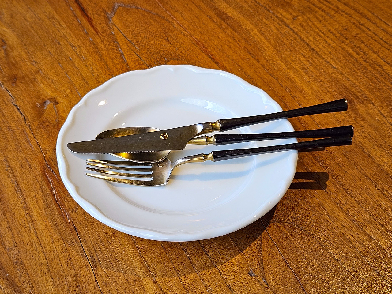 애피타이저를 다 먹고 나면 메인 접시가 나오기 전에 커트러리를 한 번 교체해 줍니다. 덕분에 코스를 섬세하게 운영하고 있는 듯한 느낌을 받아 레스토랑에 대한 신뢰감과 만족감을 한번 더 쌓을 수 있을 수 있게 됩니다.