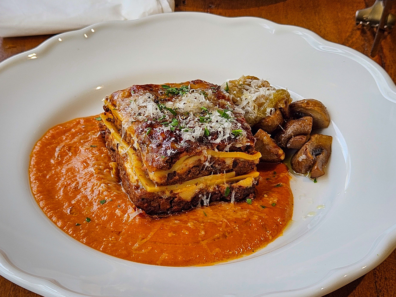 메인 요리로는 따야린과 라자냐를 주문했습니다. 따야린은 이탈리아 북부 피에몬테 지역의 전통 파스타인데, 노른자를 넣어 만든 생면이 들어가고 버터와 크림, 치즈 등으로 만든 소스가 들어가는 게 특징입니다. 그래서 그런지 면 자체만으로도 무척 고소했으며, 소스는 무척 꾸덕꾸덕하면서도 담백하고 고소한 맛을 지니고 있습니다.