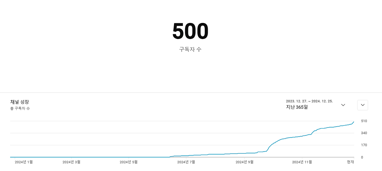 채널을 개설한 지는 이제 6개월이 됐고, 지금까지 총 15개의 영상(릴스 제외)을 업로드했다. 처음 시작할 때는 구독자 100명은 달성할 수 있을까 싶었는데 오늘 기준으로 구독자 532명이 됐다. 구독자 100만 유튜버가 넘쳐나는 시기에 구독자 532명은 정말 작은 수치이지만, 채널을 운영하면서 배워가는 점이 많다 보니 아쉽거나 조급한 마음은 전혀 들지 않고 있다. 그저 꾸준히 유지해 나갔으면 하는 바람만 있을 뿐이다.