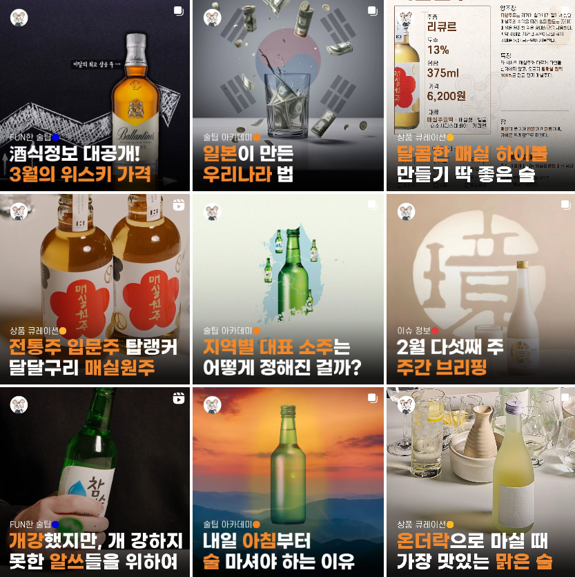 술팁은 전통주 관련 인스타그램 계정이다. 퇴사를 하면 이 계정을 제대로 키워보자라는 생각을 했었고, 그렇게 올 한 해 동안 73개의 게시물을 올렸다. 하루에 한 개씩 올렸으니 2달 하고도 2주 정도 계정을 운영한 셈이다. 다시 말하자면 중간에 계정 운영을 멈췄다는 것인데, 계정 운영을 멈춘 이유는 다음과 같다.