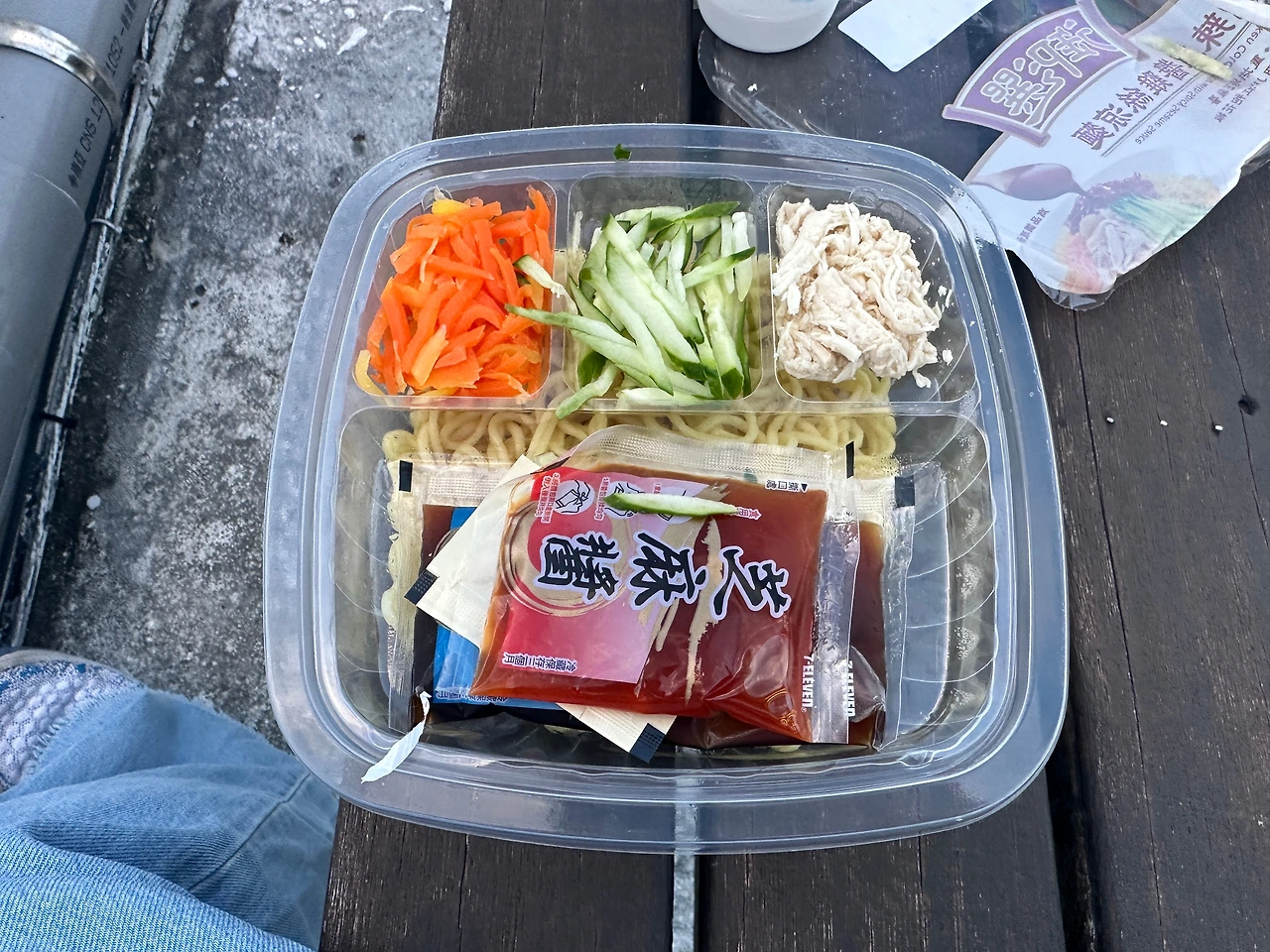 그렇게 숙소에 오는 길에 세븐일레븐에서 저녁으로 먹을 비빔면과 내일 아침에 먹을 바나나, 요구르트 그리고 물 한 병을 샀다. 걷는 중간에 지쳐서 잠시 의자에 앉았다.