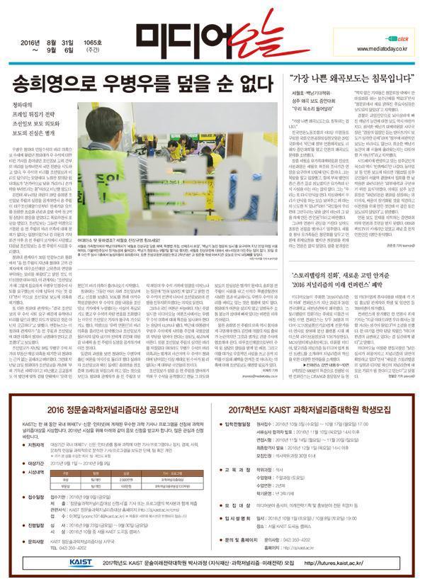 8월31일 아침 발행될 미디어오늘 1065호입니다.