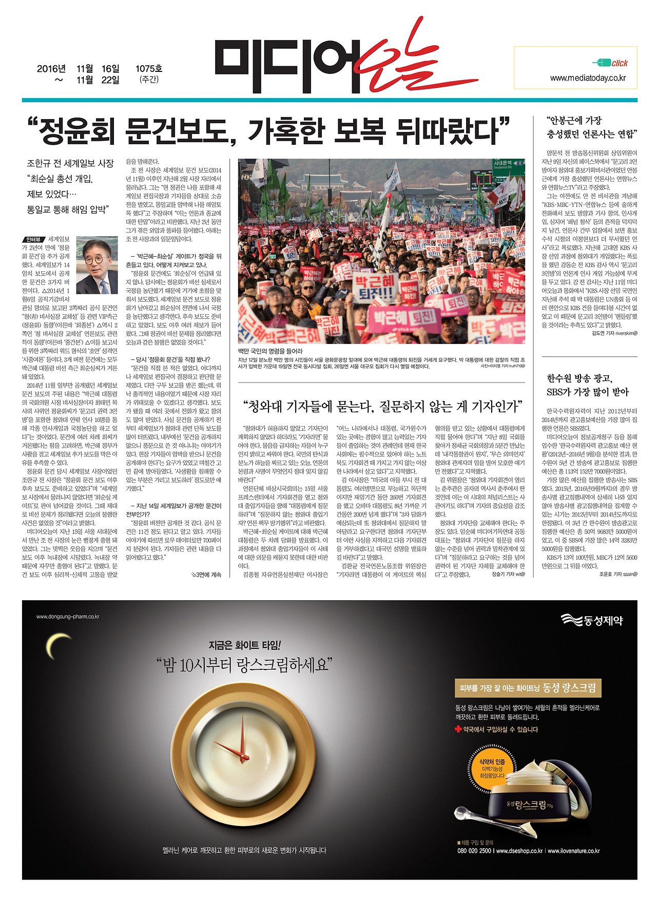 11월16일 아침 발행될 미디어오늘 1075호입니다. 놀라운 뉴스가 많습니다.