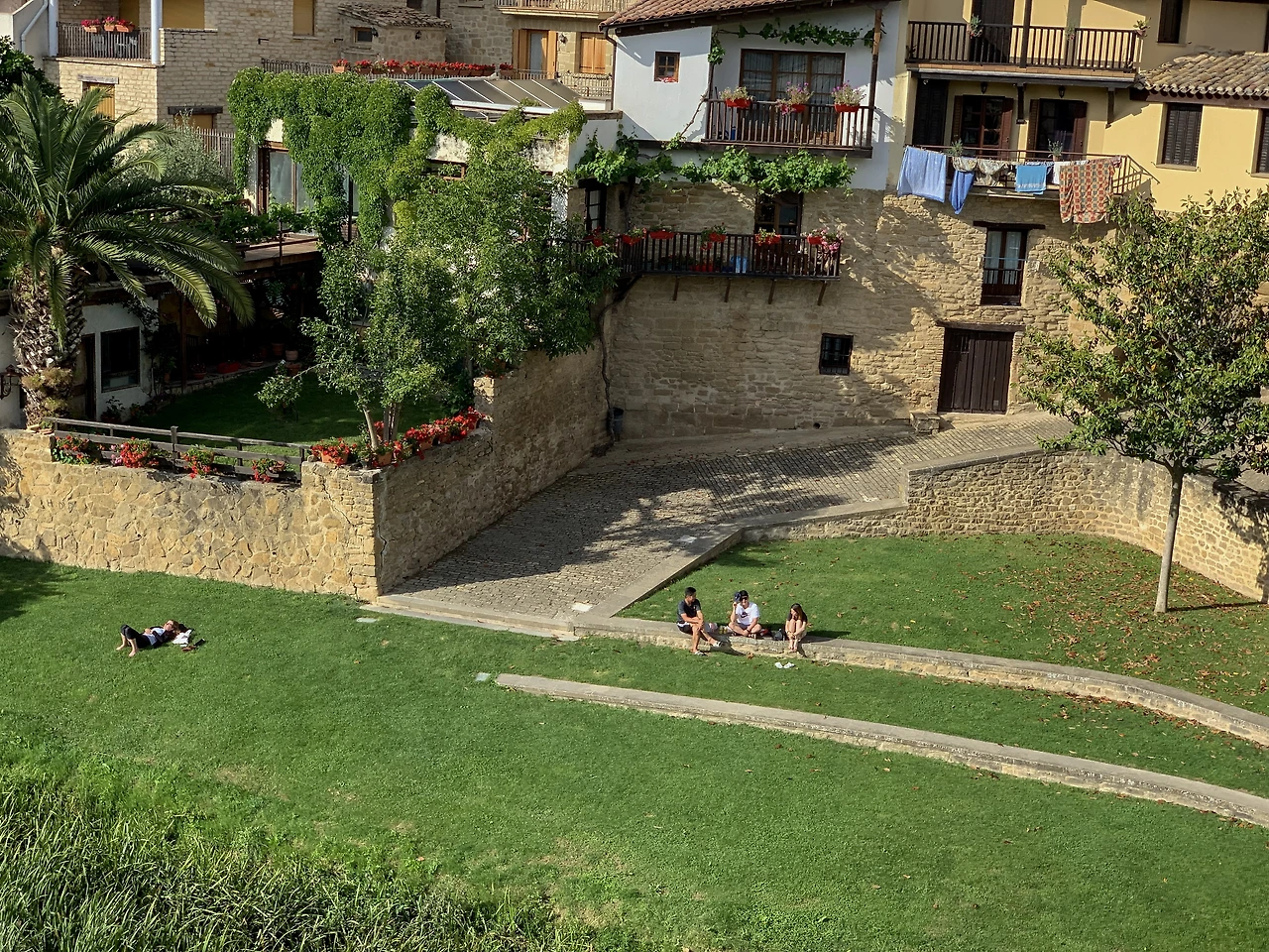 아침과 다르게 내리쬐는 햇빛에 노곤하면서도 옆에서 생장 동기 ken과 팜플로나에서 알게 된 P의 대화를 듣고 있으니 흥미로웠다. 순례길 위에서 마주치는 다양한 사람들과 그 사람들이 들려주는 이야기는 어디서도 사지 못하는 것이니 얼마나 소중한지. 한 명 한 명이 책과 같이 느껴졌다. 나중에 산책 나온 K가 우리를 발견하고 찍어준 사진 덕분에 이 사진을 볼 때면 이 순간이 떠오른다.