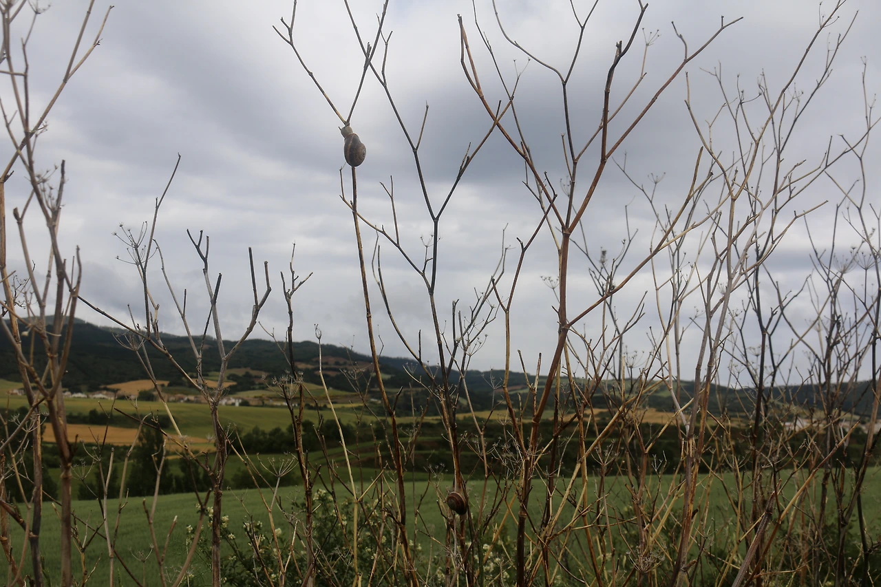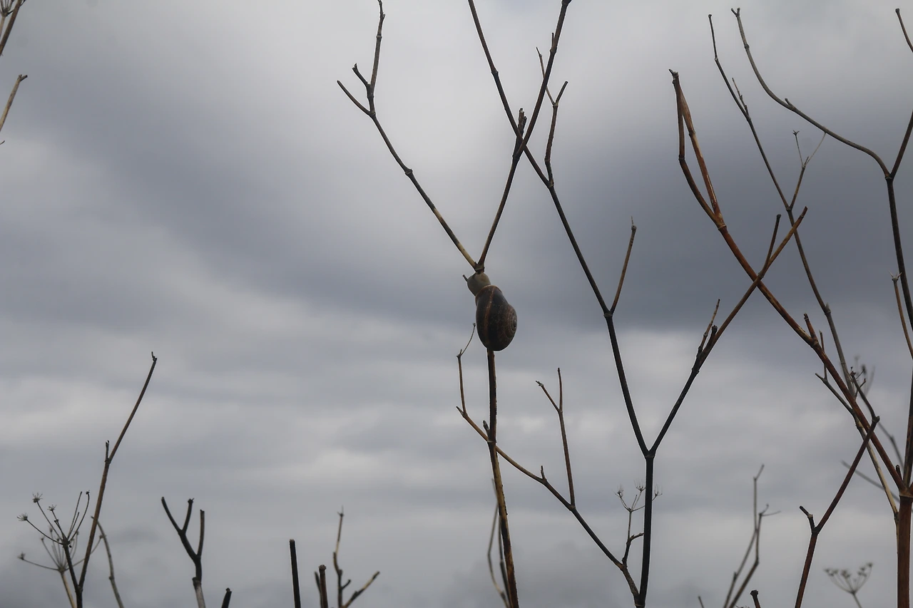 걷다 보니 나뭇가지에 대롱대롱 매달려있던 달팽이가 눈에 들어왔다. 비가 와서 저 위로 피한 걸까?
